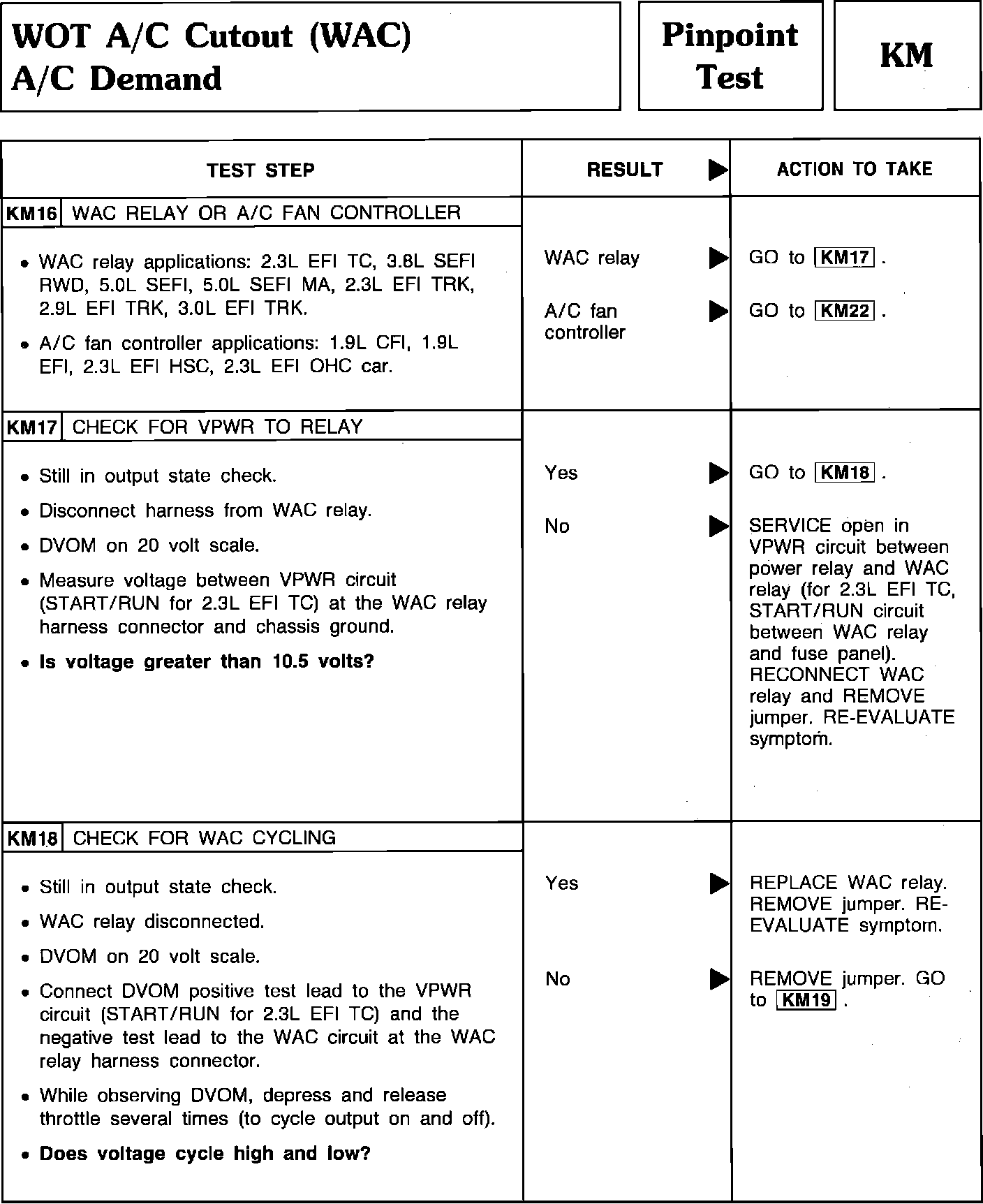 Pinpoint Test KM16 Thru KM18 - WOT A/C Cutoff (WAC) A/C Demand: