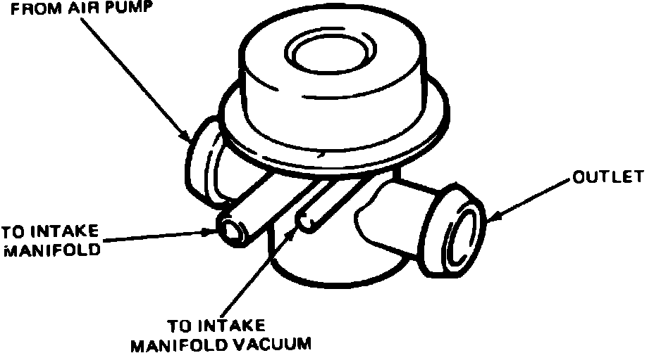The anti-backfire gulp valve, used on some vehicles, routes a portion of thermactor air to the intake manifold and is activated by intake manifold vacuum signal, Fig. 64. This valve is located downstream from the air bypass valve and functions only during periods of sudden decrease in manifold pressure.