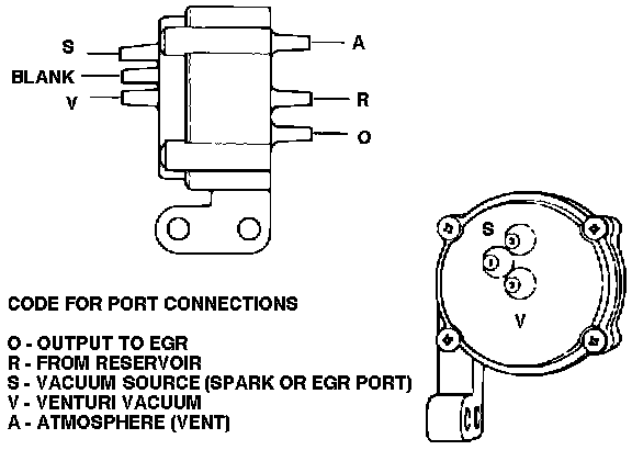 EGR VENT SOLENOID (EGRV) - Electrical solenoid or its control line. Solenoid normally vents EGRC vacuum line. When EGRV is energized, EGRC can open EGR valve.