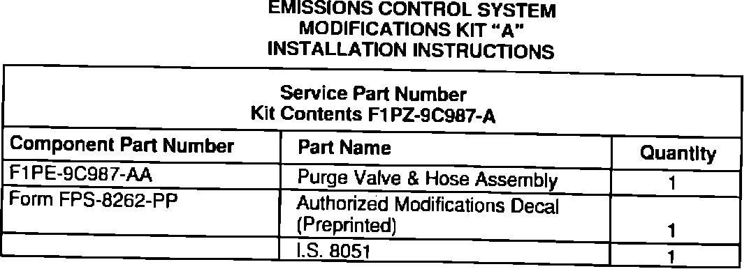 MODIFICATIONS KIT "A"