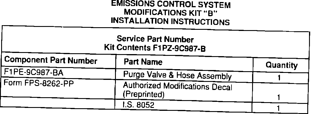 MODIFICATIONS KIT "B"
