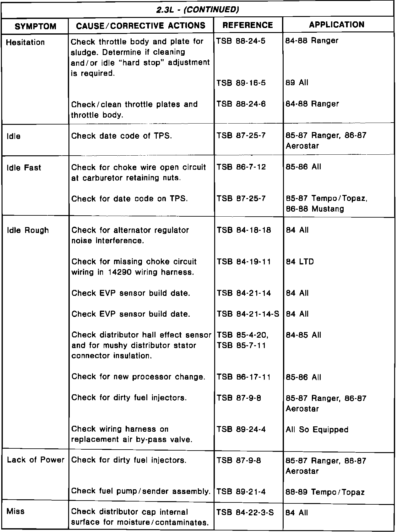 Driveability TSB's - Summary