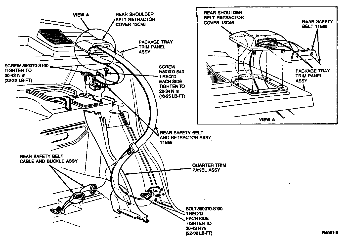 10. Remove anchor end of webbing through the opening in the quarter trim panel and the package tray trim panel.