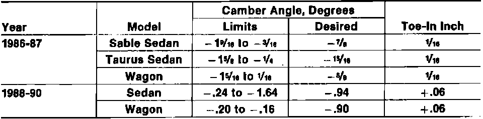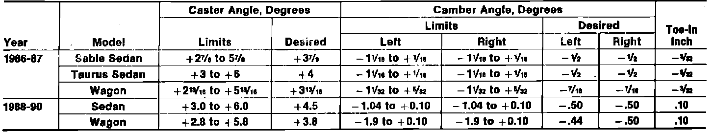 Front Wheel Alignment Specifications: