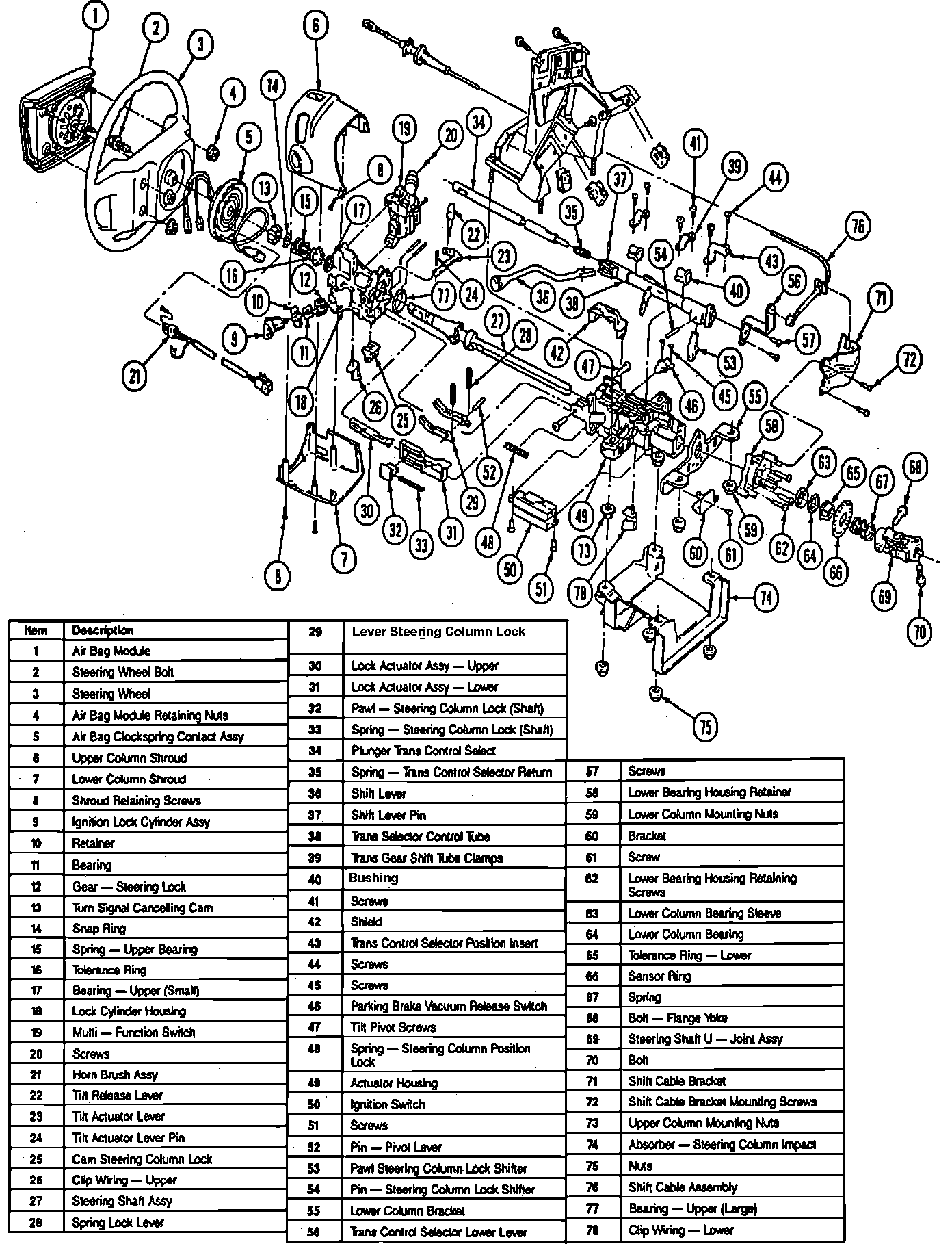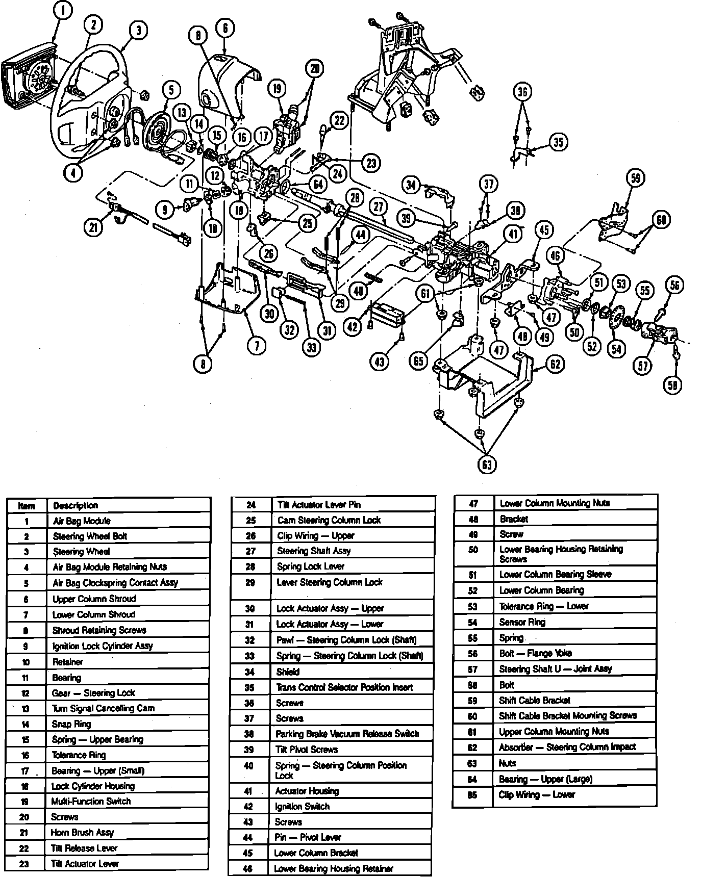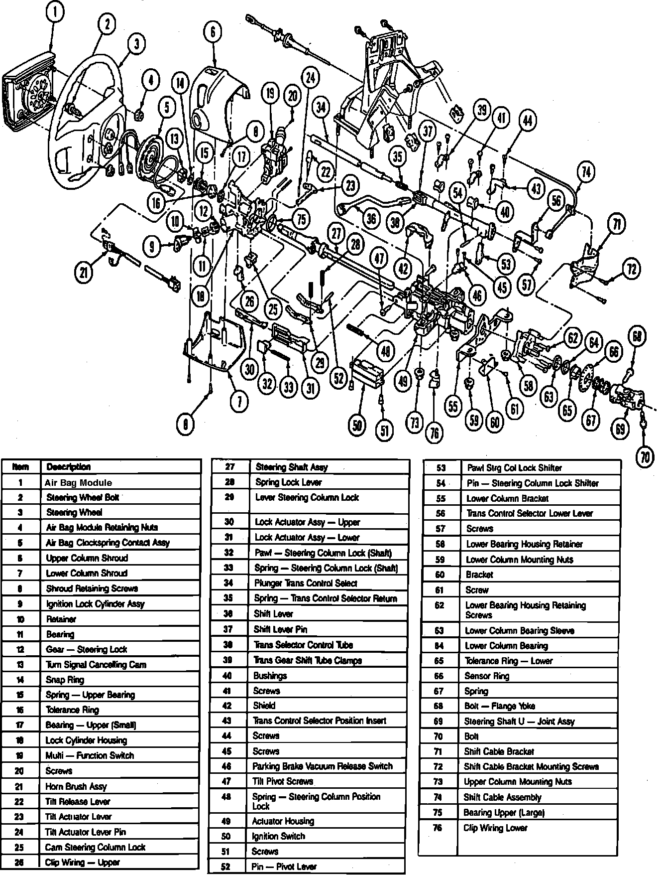 Fig. 4 Exploded View Of Steering Column W/Column Shift: