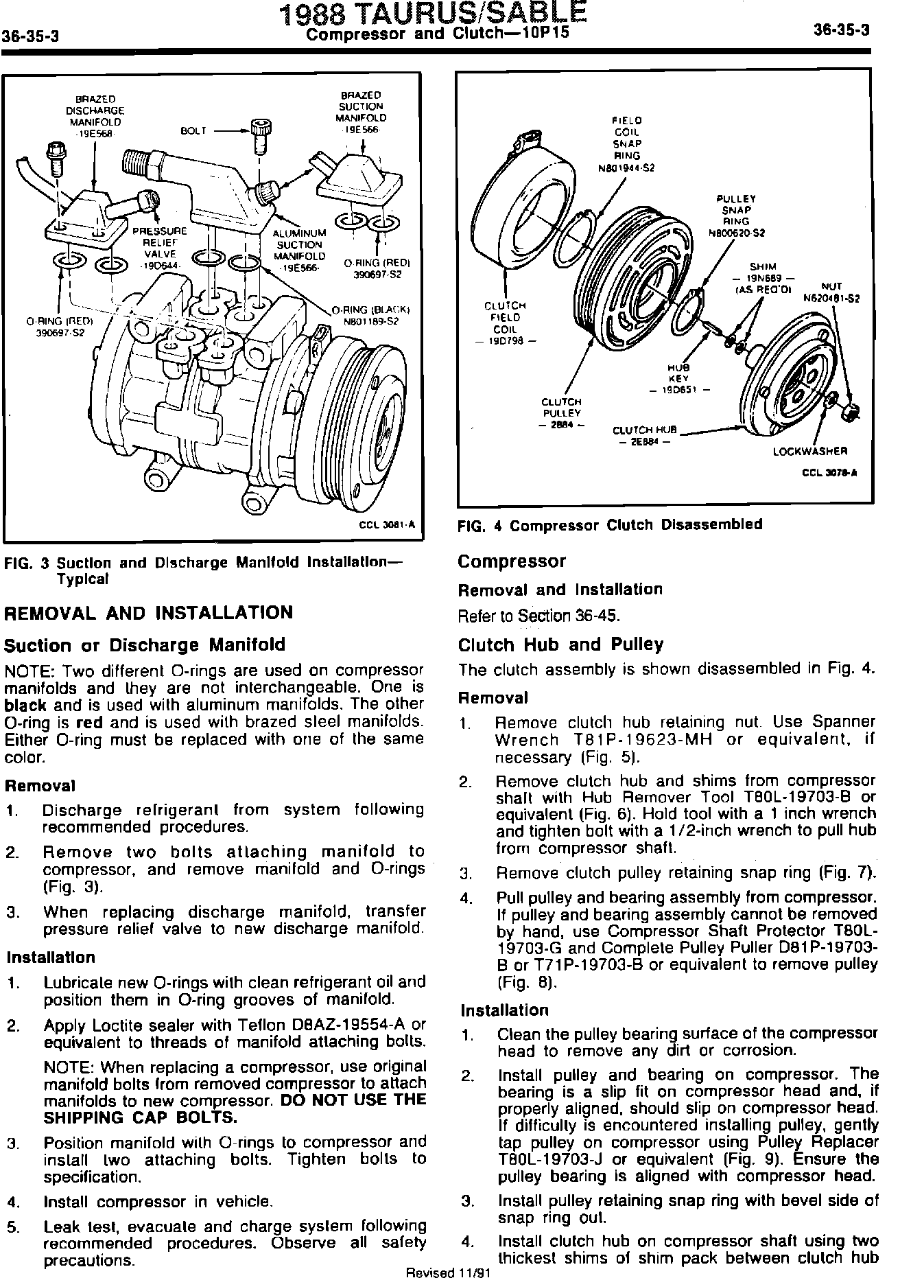 ^ SHOP MANUAL - 1989 - PAGE 36-35-3 - REFERENCE TO A/C COMPRESSOR REMOVAL AND INSTALLATION PROCEDURES REVISED