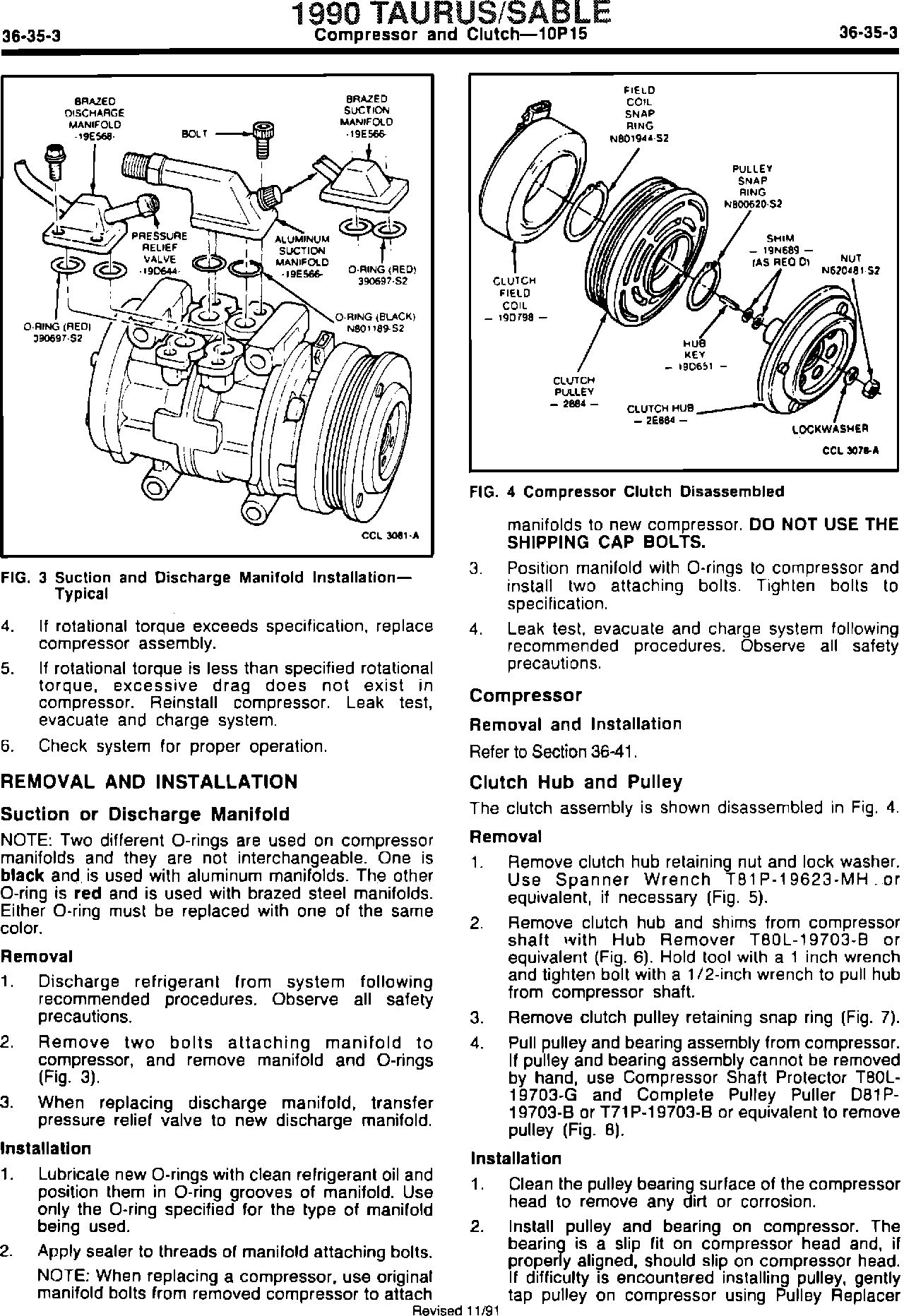 ^ SHOP MANUAL - 1990 - PAGES 36-35-3, 36-36-2 AND 36-37-3 - REFERENCE TO A/C COMPRESSOR REMOVAL AND INSTALLATION PROCEDURES REVISED