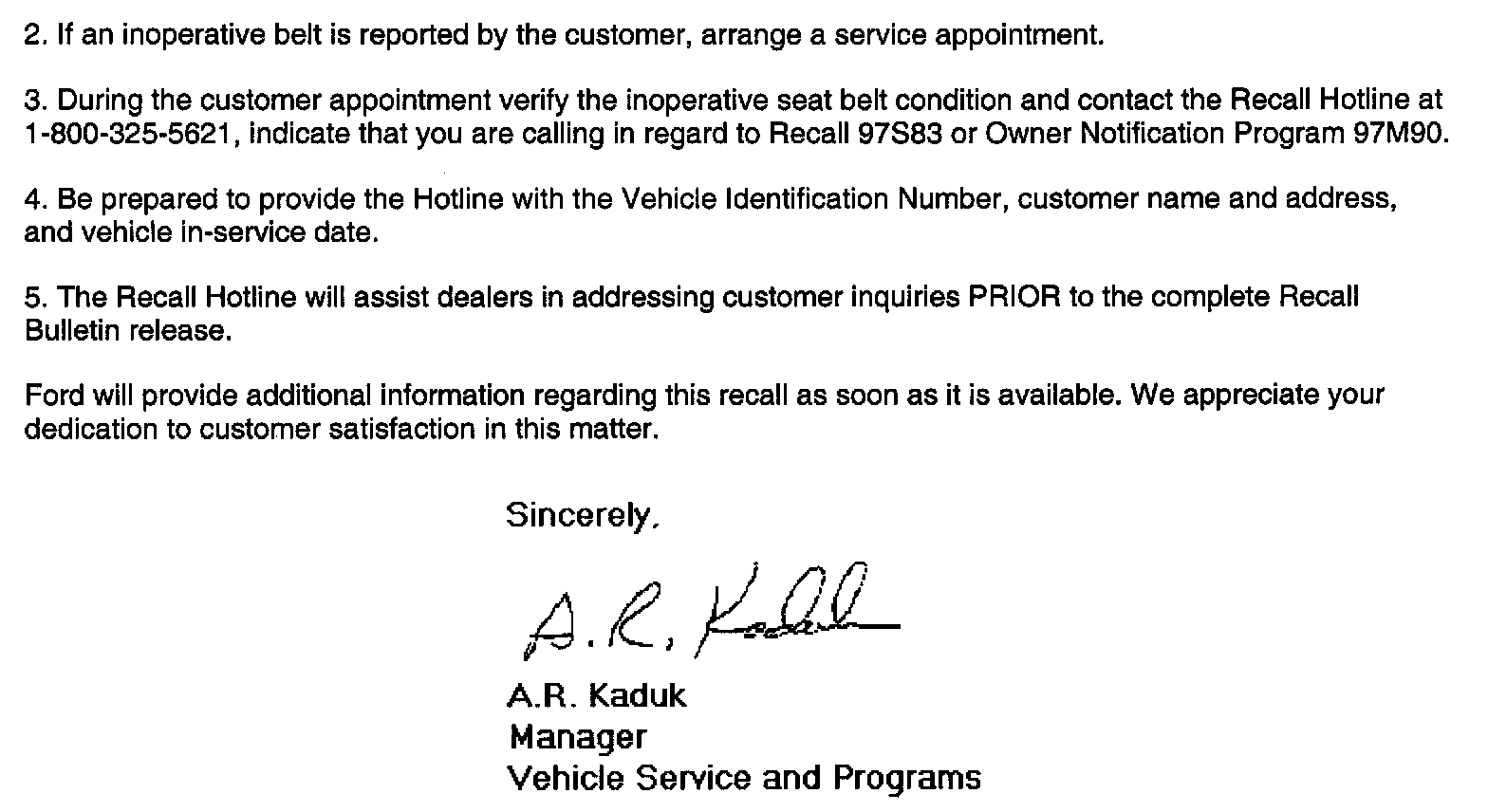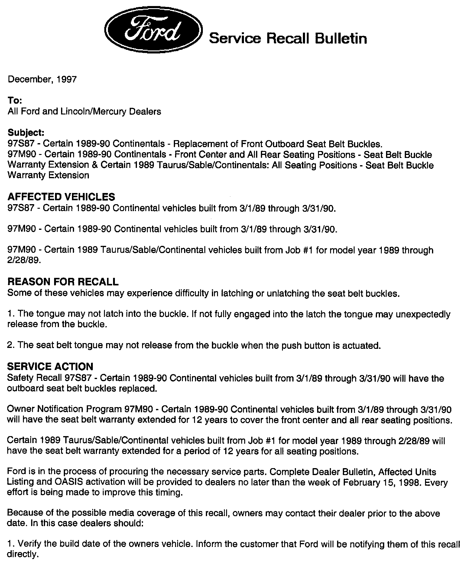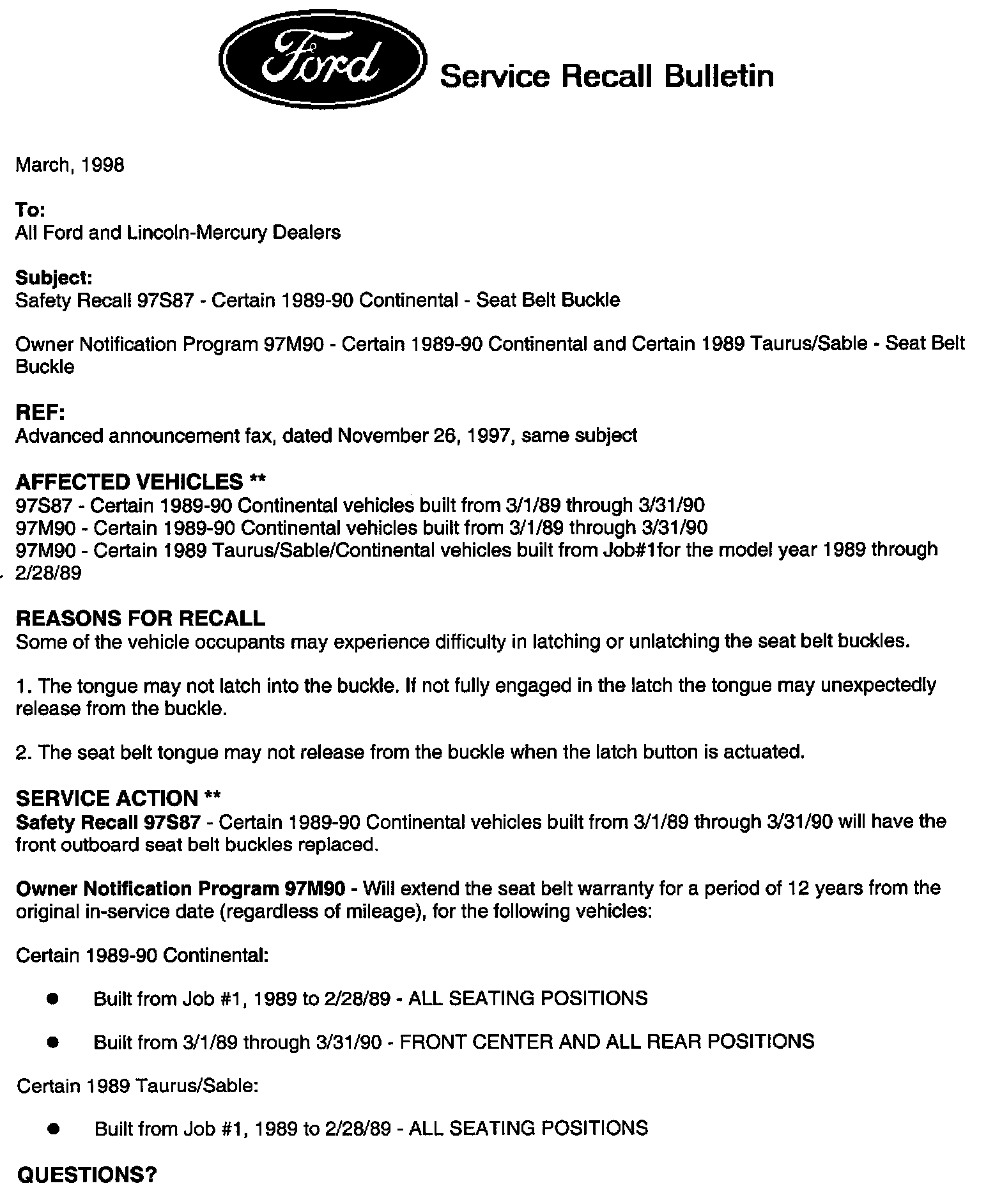 Recall - Seat Belt Buckle