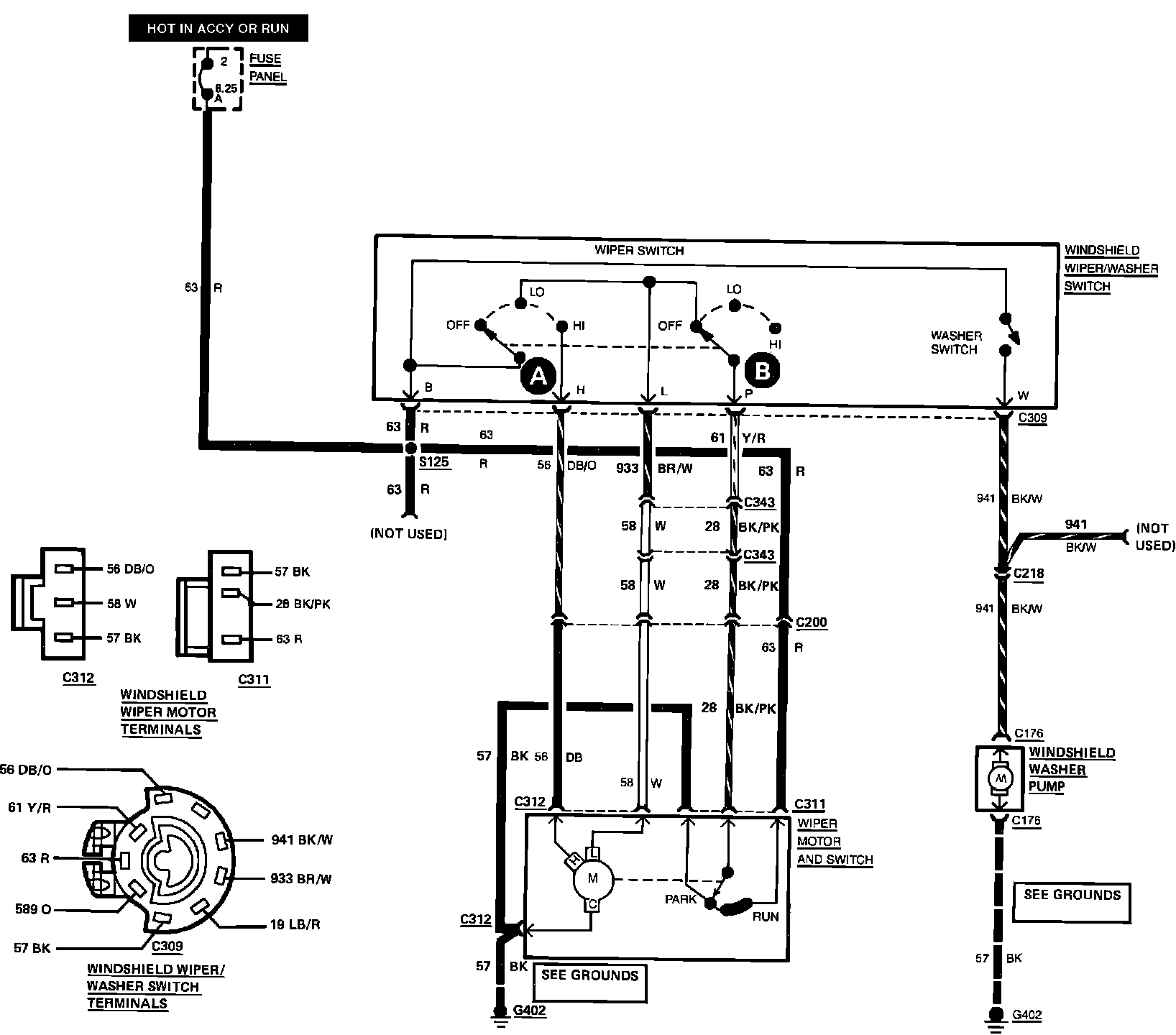 Windshield Wiper/Washer Wiring Circuit. Less Interval: