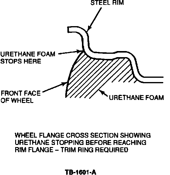 ^ If the foam runs up to the outside edge of the wheel rim, the wheel cannot accept a trim ring, Figure 1.