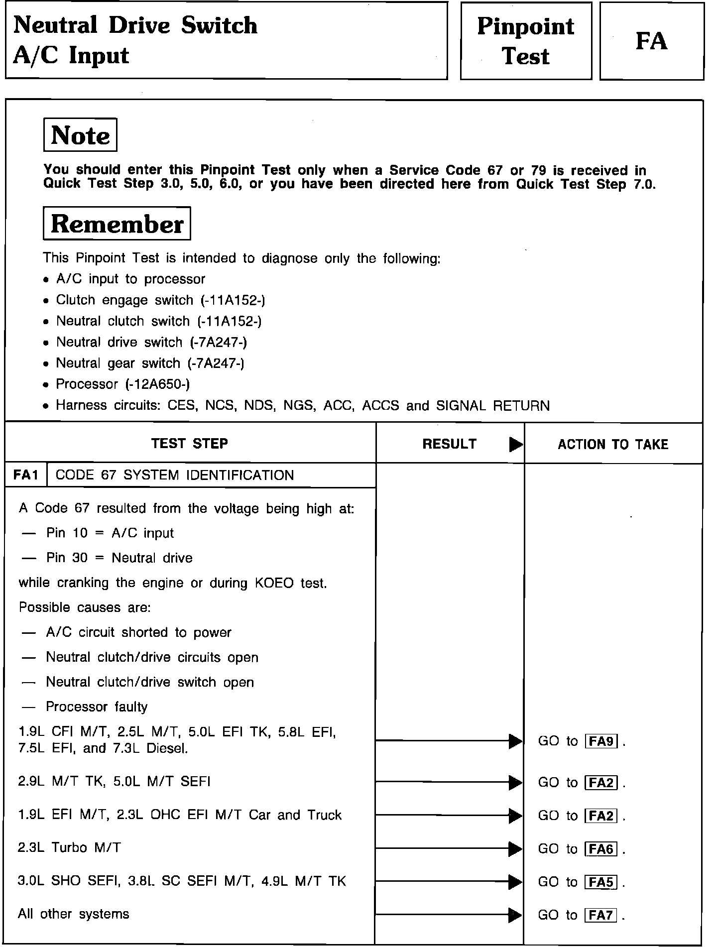 Pinpoint Test FA1 - Neutral Drive Switch, A/C Input: