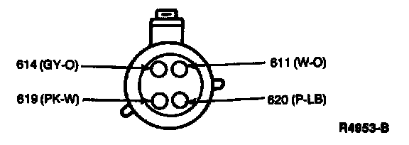 6. Pull the white submersible connector apart and examine the wiring harness end of the connector (not the sensor end). Identify circuits 619 PK/W, 620 P/LB, 611 W/O and 614 GY/O.