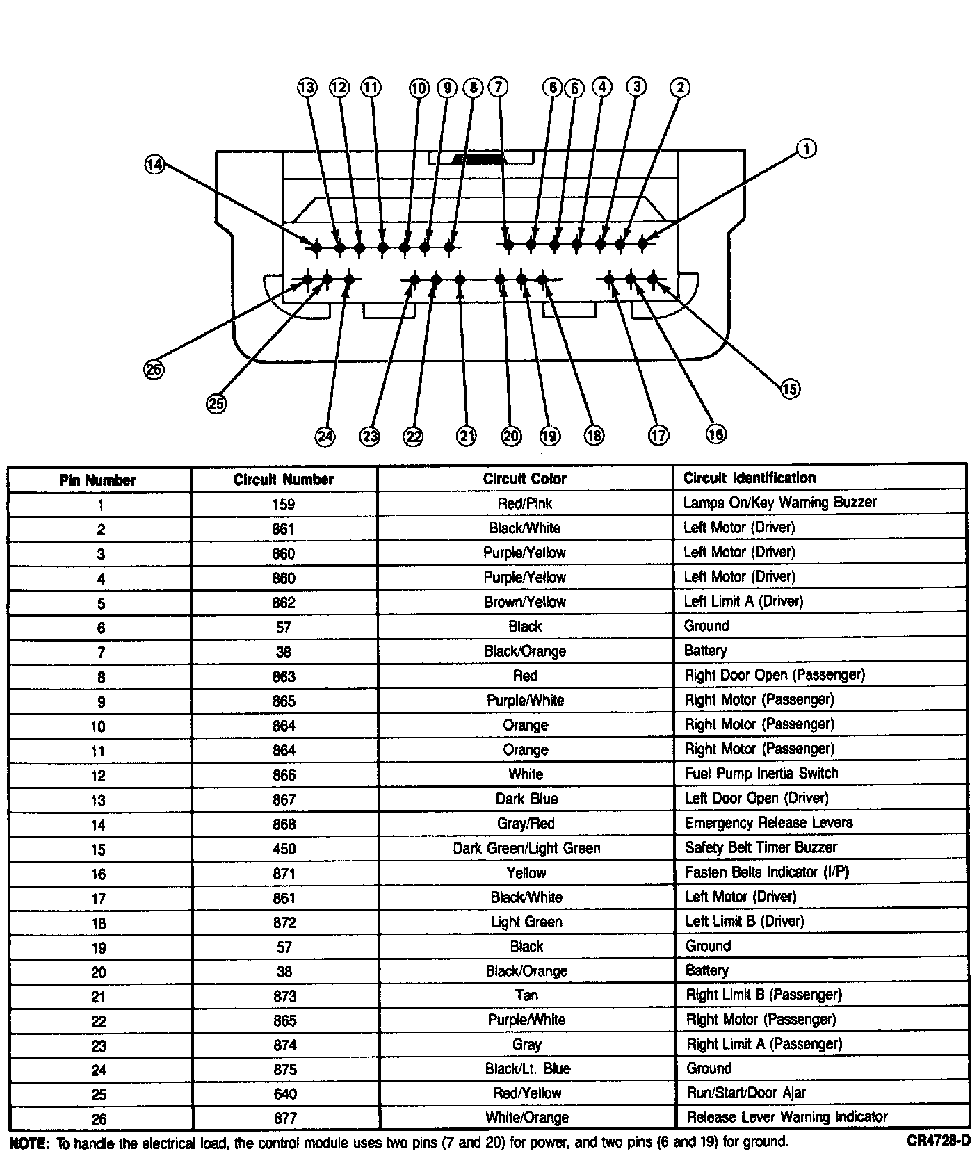 NOTE: To handle the electrical load, the control module uses two pins (7 and 20) for power, and two pins (6 and 19) for ground.