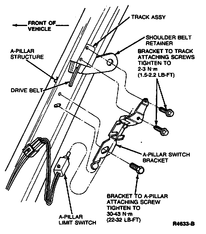 10. Remove screw from A-pillar bracket to A-pillar.