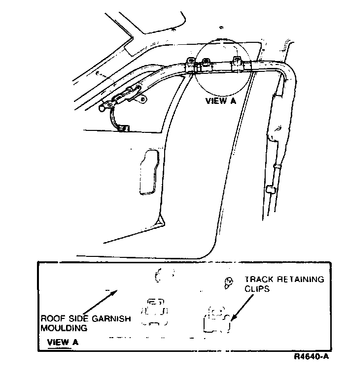 15. Rotate track inboard to remove track limit switch retaining tab from slot in A-pillar.