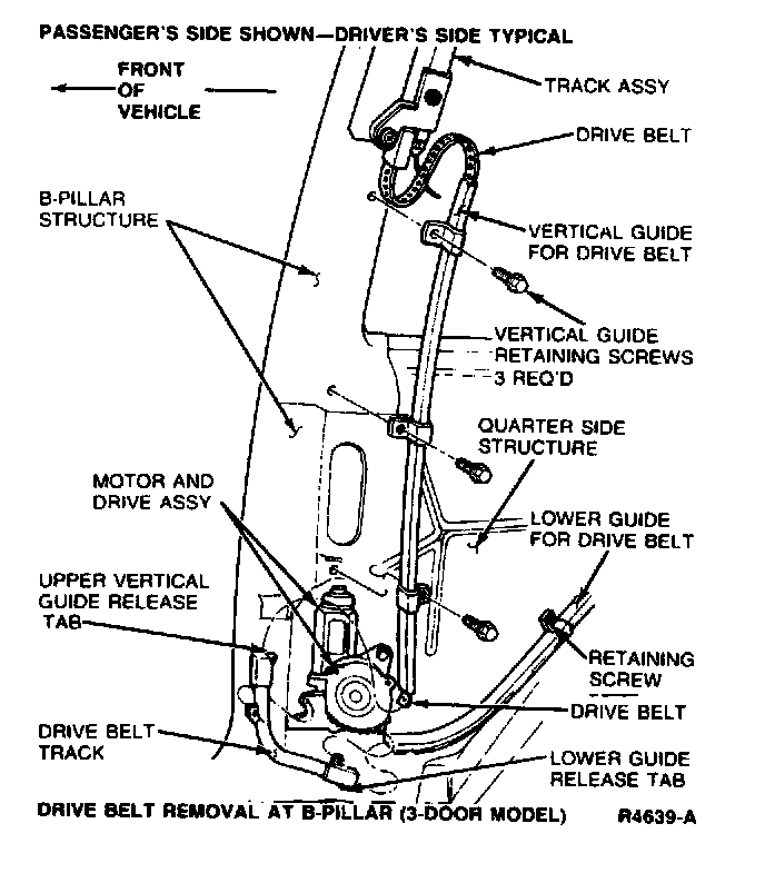 14. Disengage vertical guide release tab at B-pillar bracket.