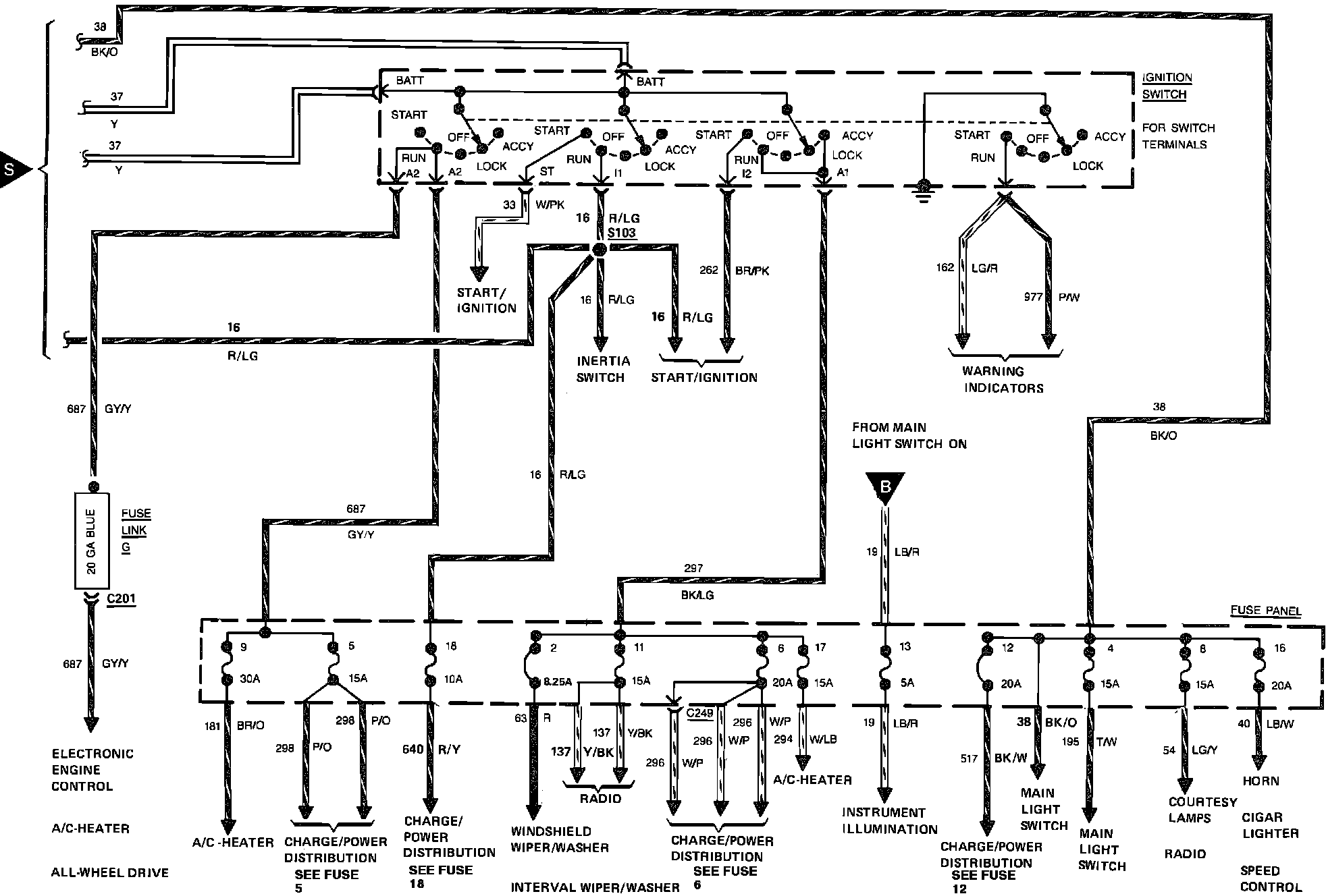 Charge And Power Distribution Wiring Circuit. Ignition Switch: