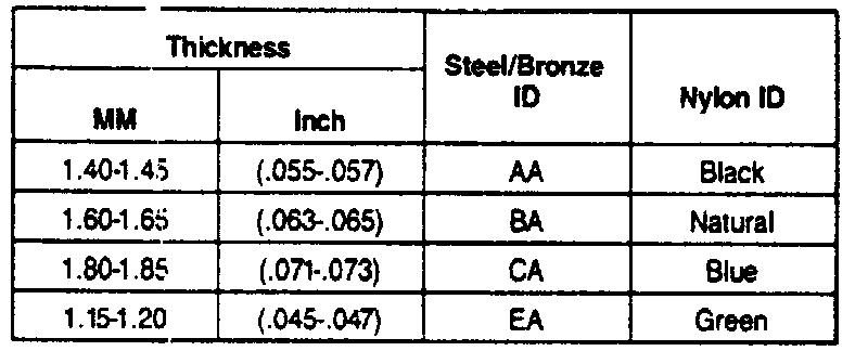 Thrust Washer Thickness Chart: