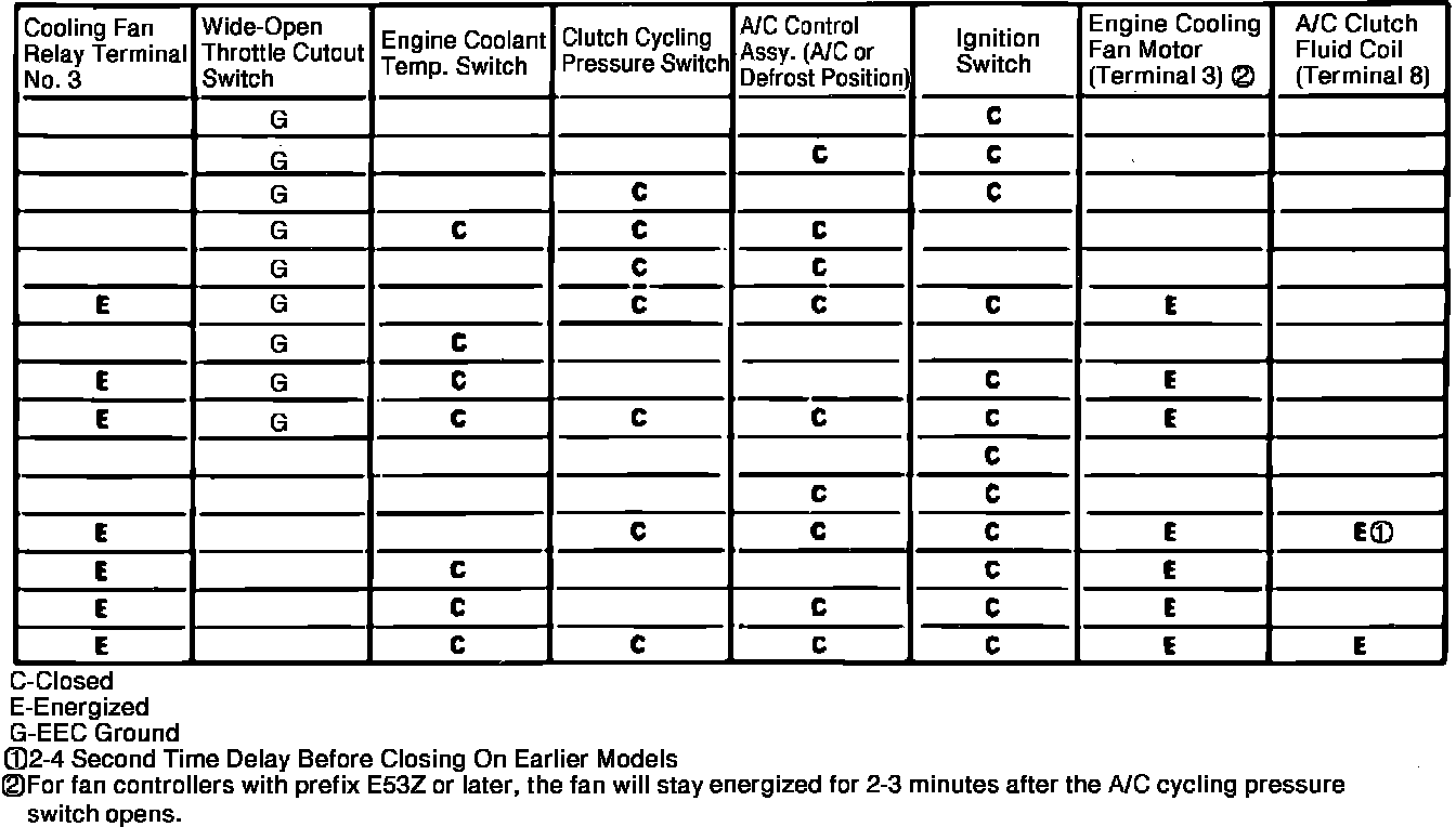 Fig. 29 Cooling Fan Controller Diagnosis - Circuit Operation Chart: