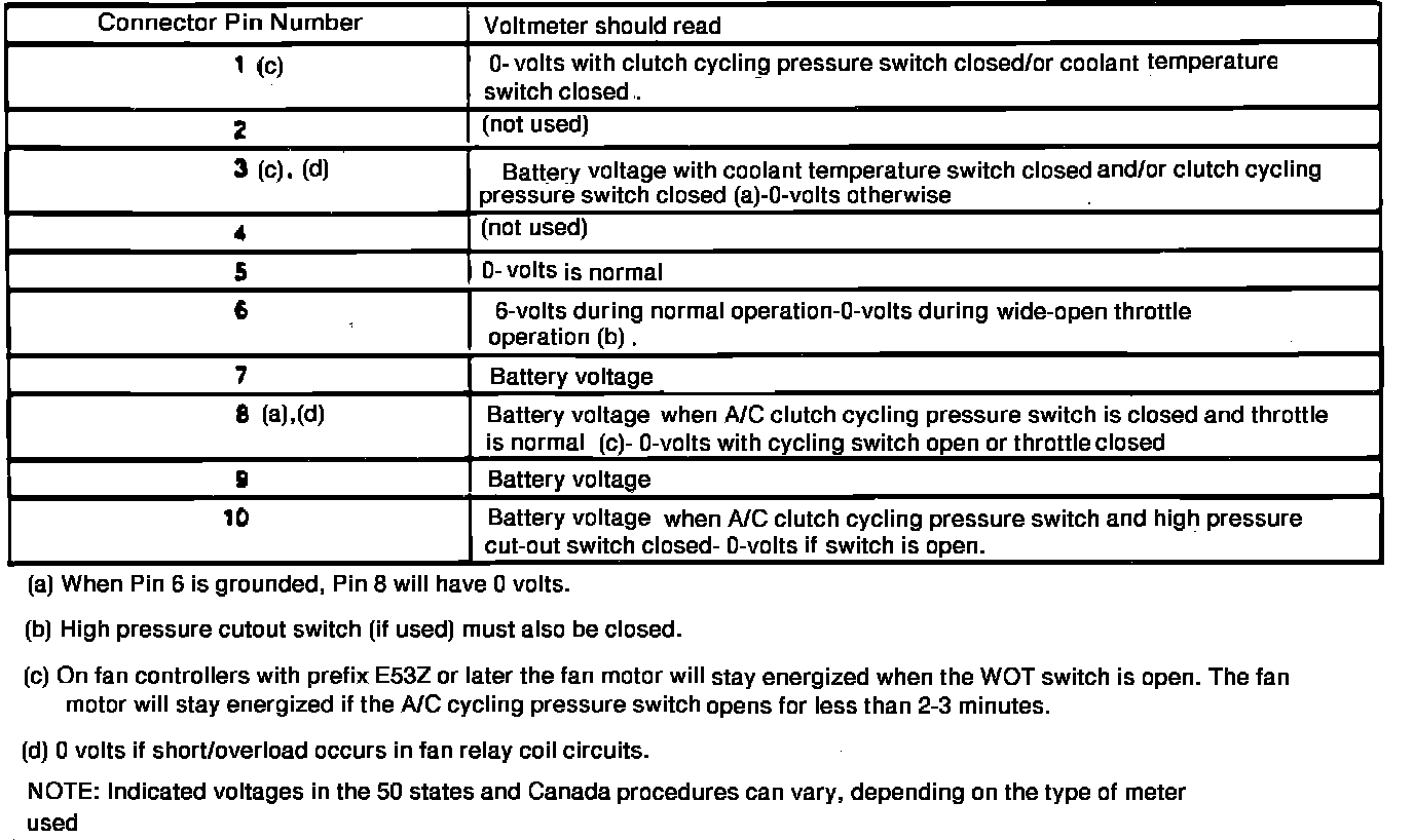 Fig. 29 Cooling Fan Controller Diagnosis, Pinout - Engine Running & AC On: