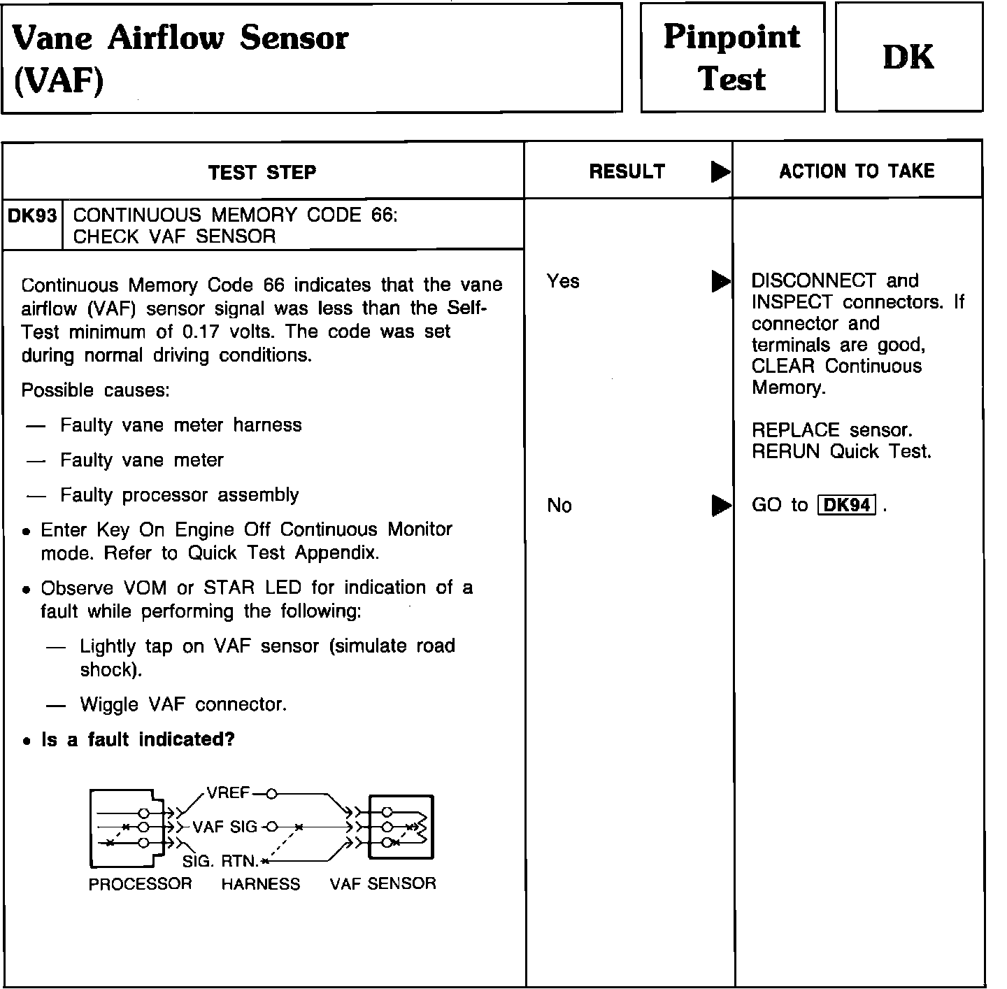Pinpoint Test DK93 - Vane Airflow Sensor (VAF):