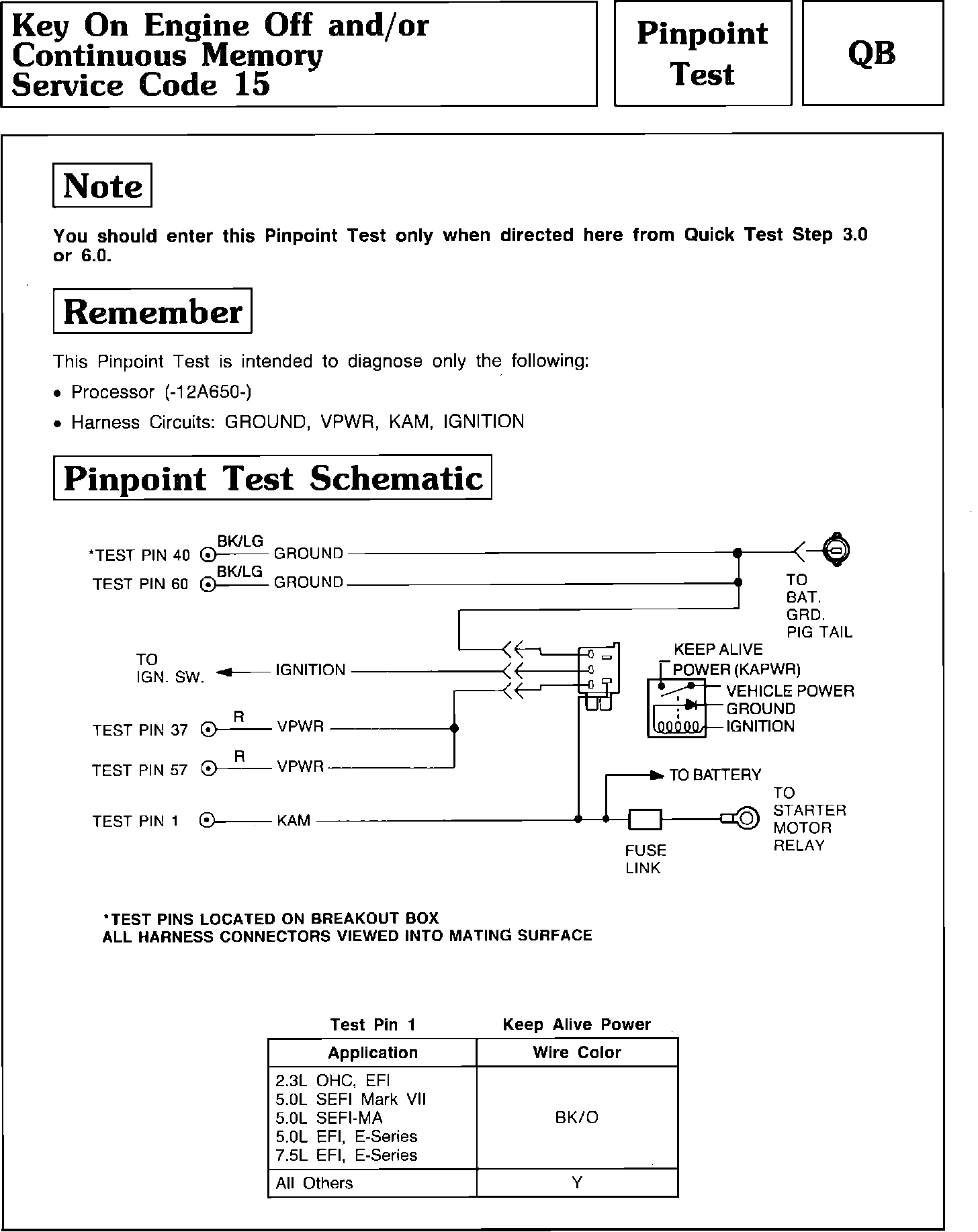 Pinpoint Test QB - Key On Engine Off and/or Continuous Memory Code 15: