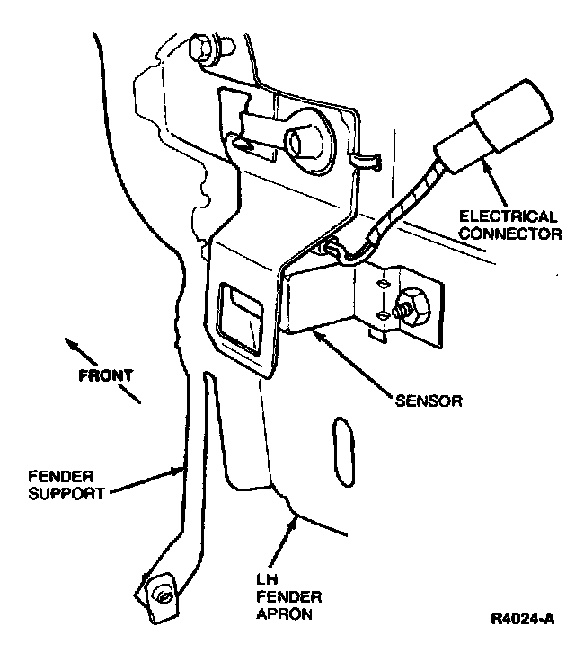 1. Position LH sensor to LH fender apron and secure with two screws. Tighten screws to 9-14 Nm (7-10 lb-ft).