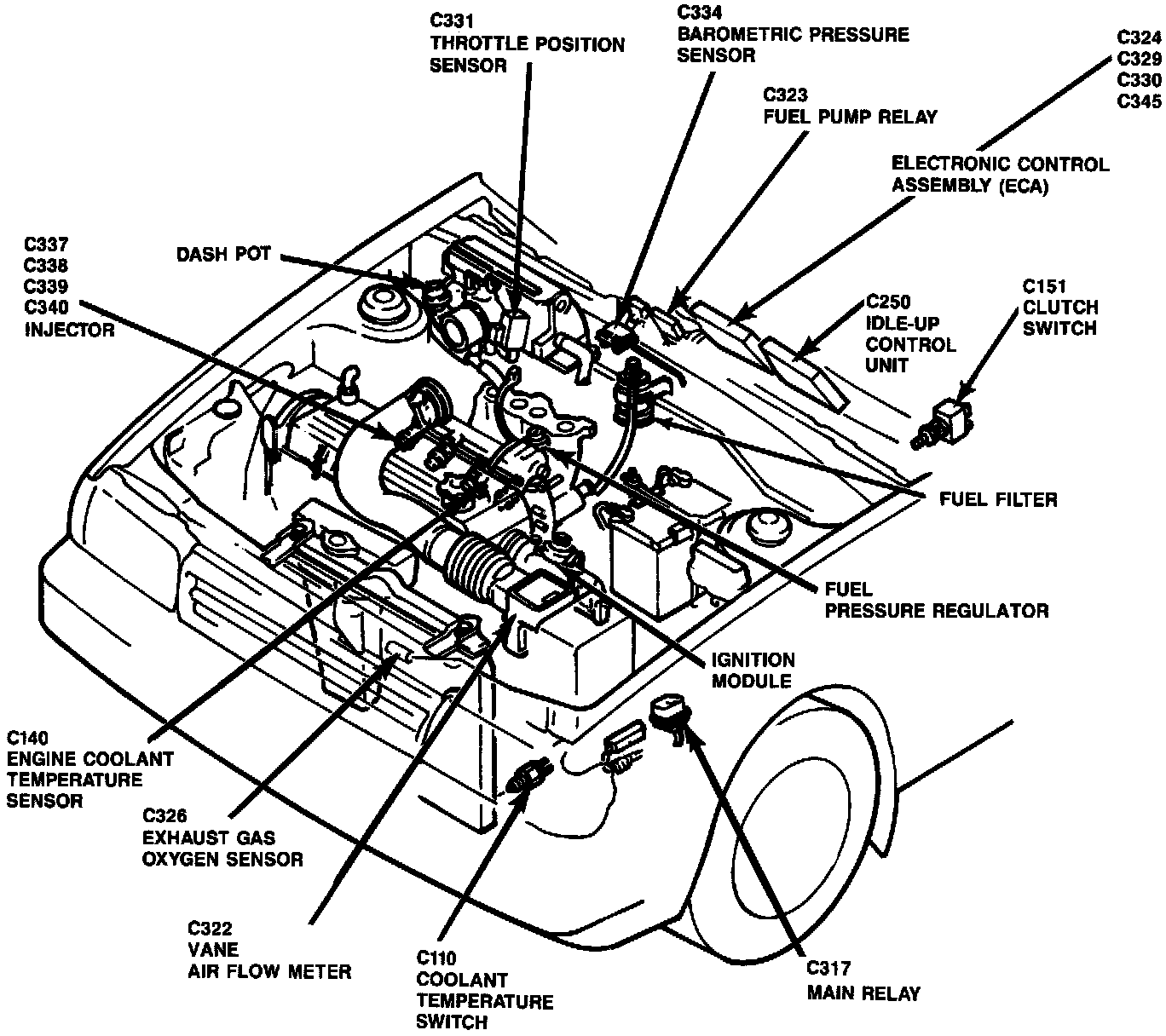 Engine Compartment Showing Electronic Control: