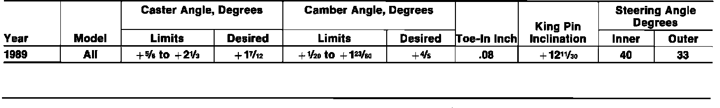 Front Wheel Alignment Specifications: