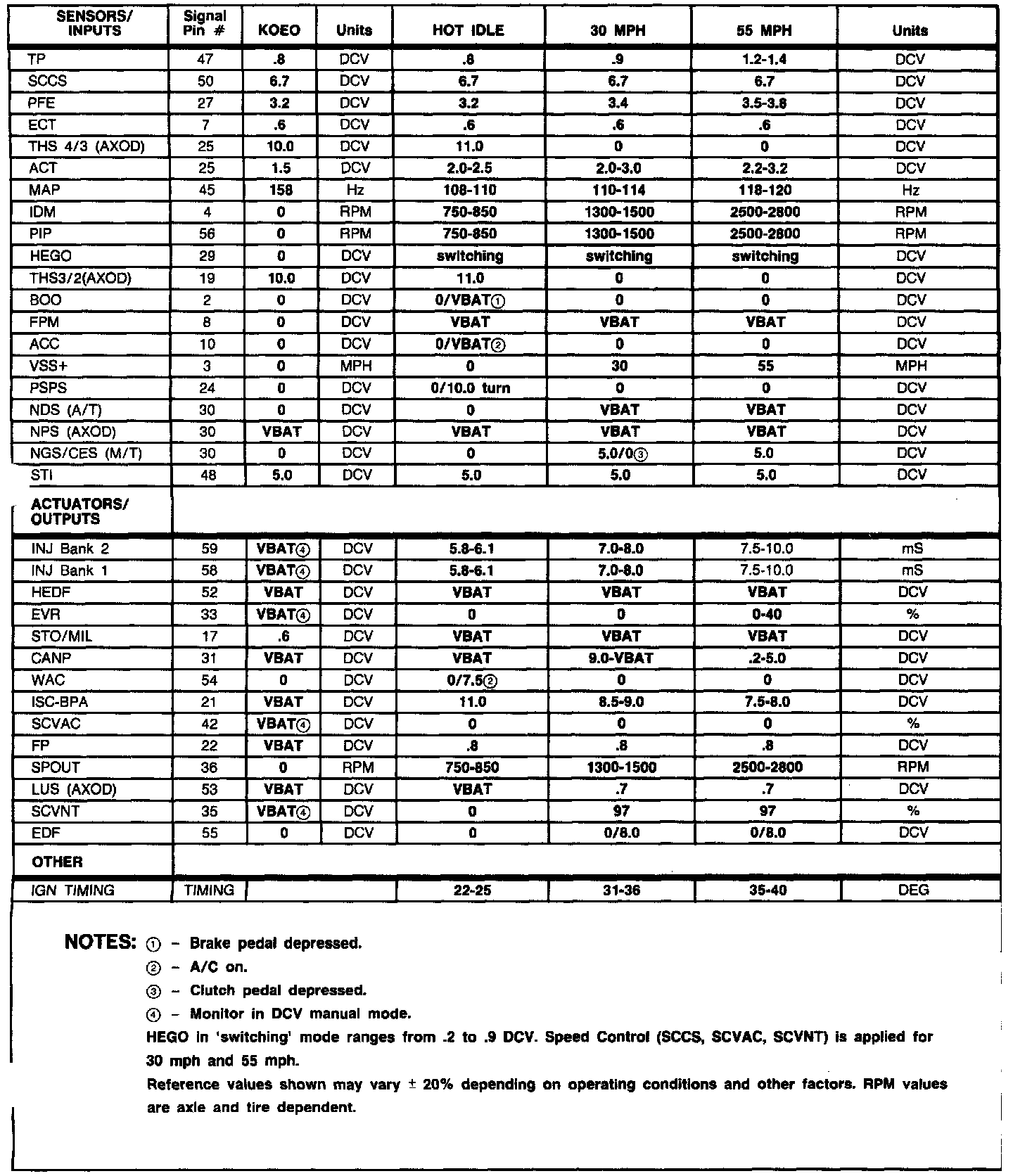 Normal Scan Data Values (Includes PIDs)