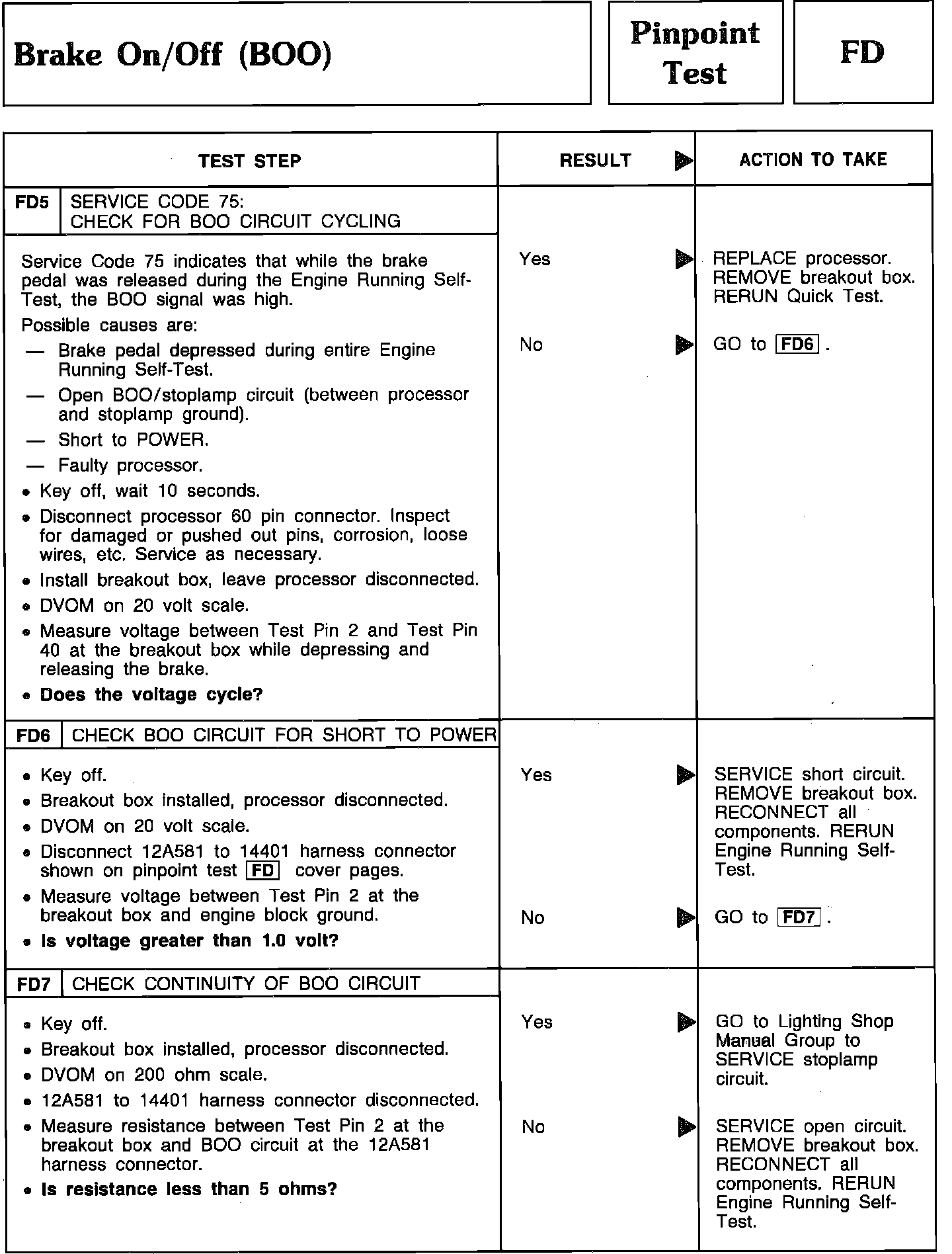 Pinpoint Test FD5 Thru FD7 - Brake On/Off (BOO):