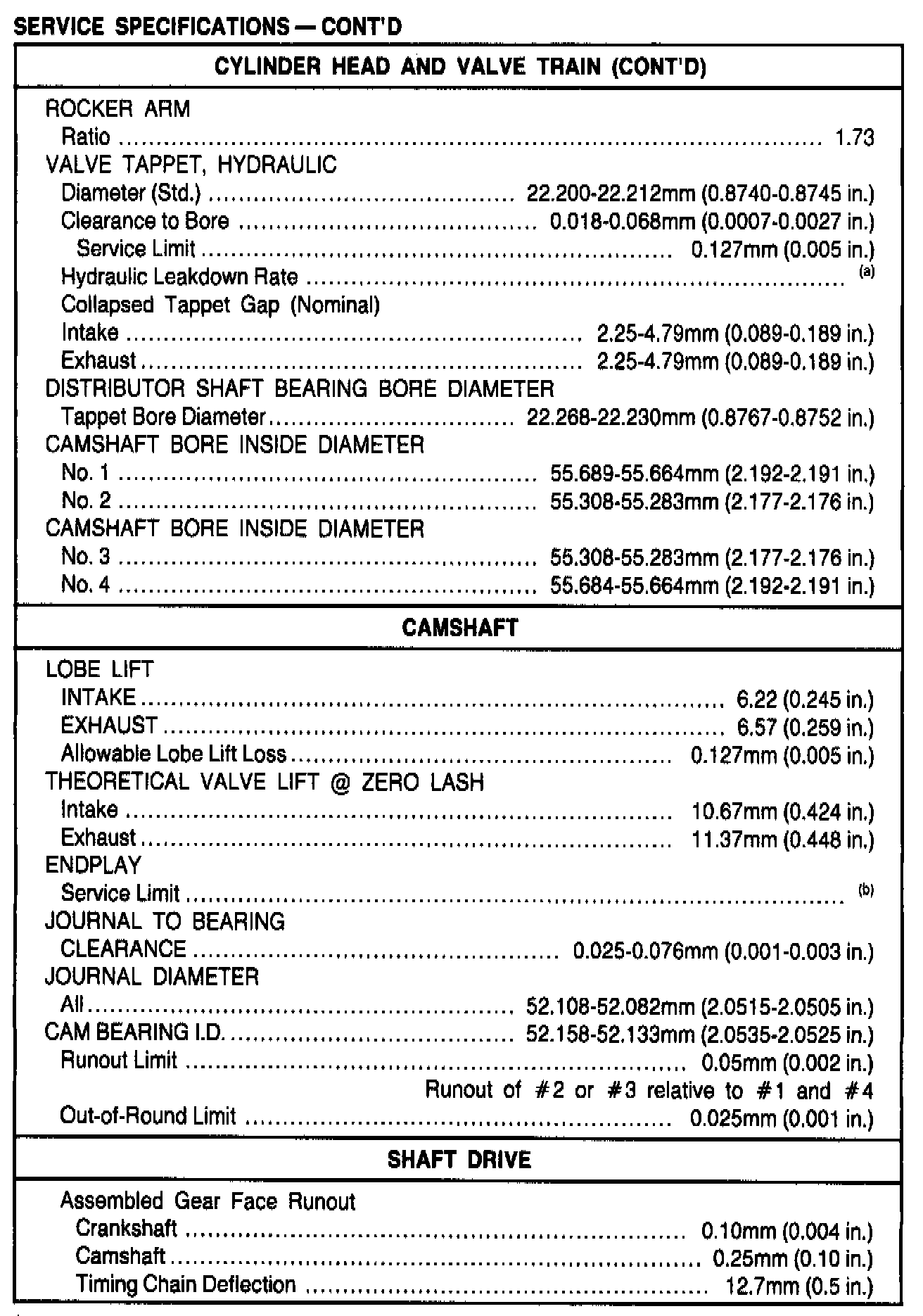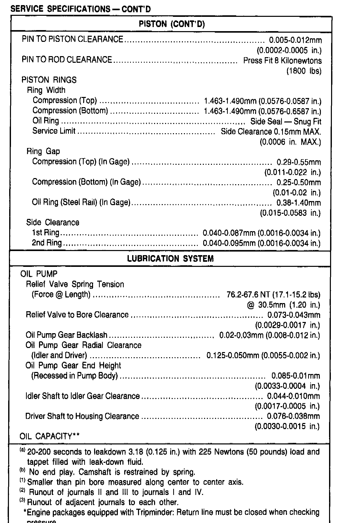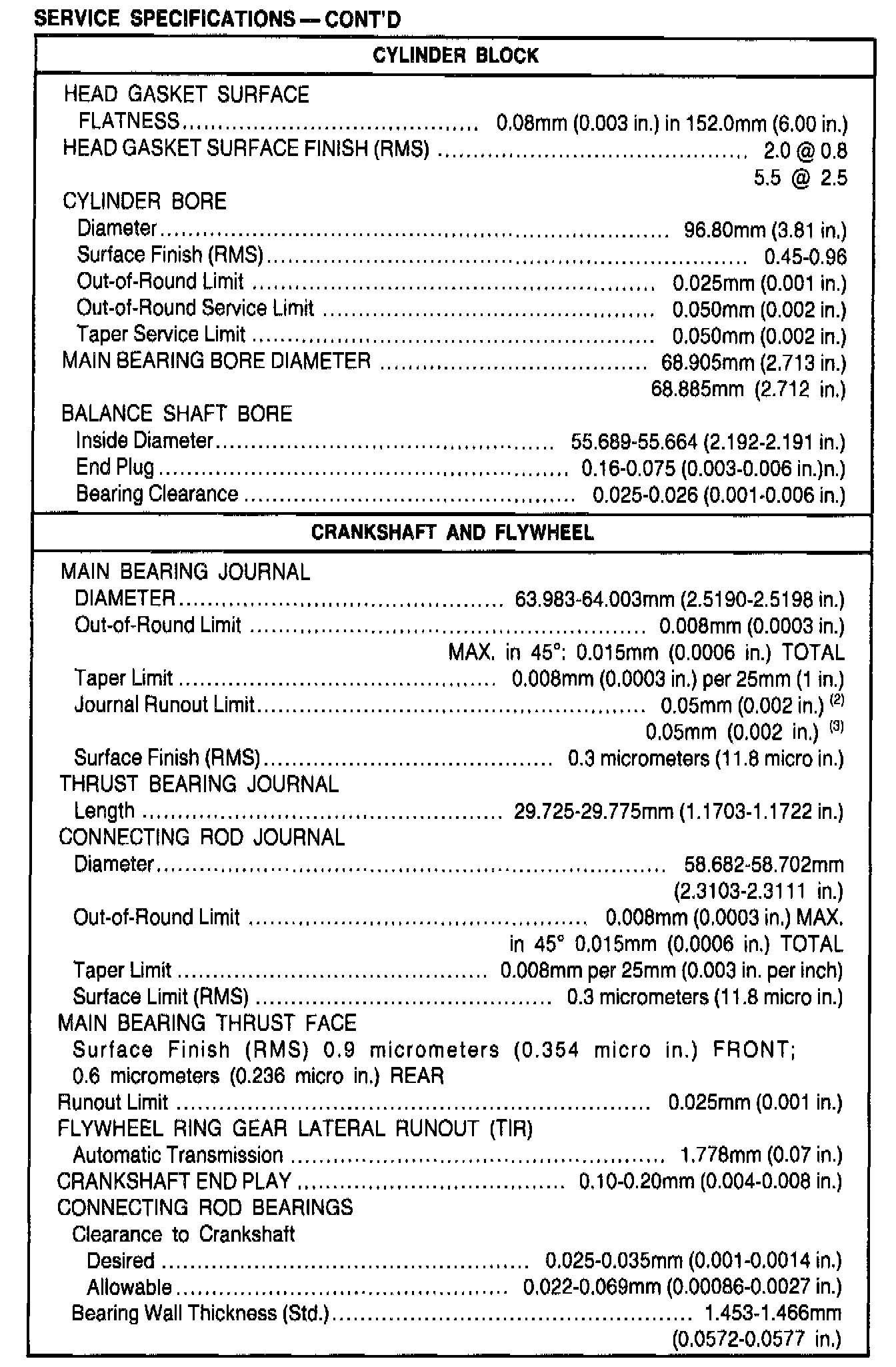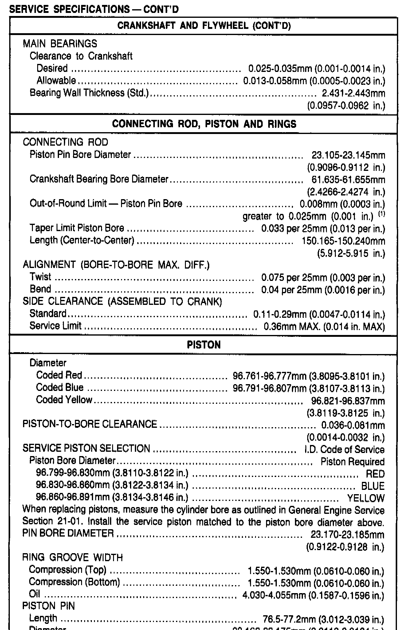General Engine Specifications
