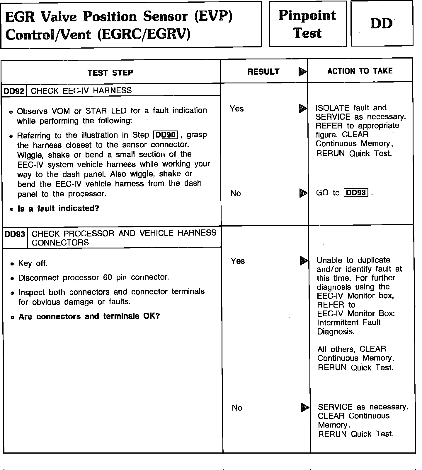 Pinpoint Test DD92 & DD93 - EGR Valve Position Sensor (EVP) Control/Vent (EGRC/EGRV):
