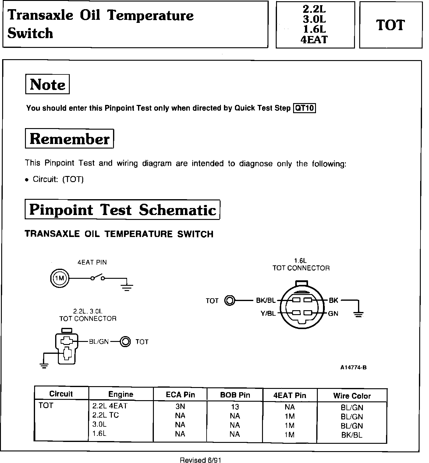 Transaxle Oil Temperature Switch 2.2L, 3.0L, 1.6L - 4EAT
