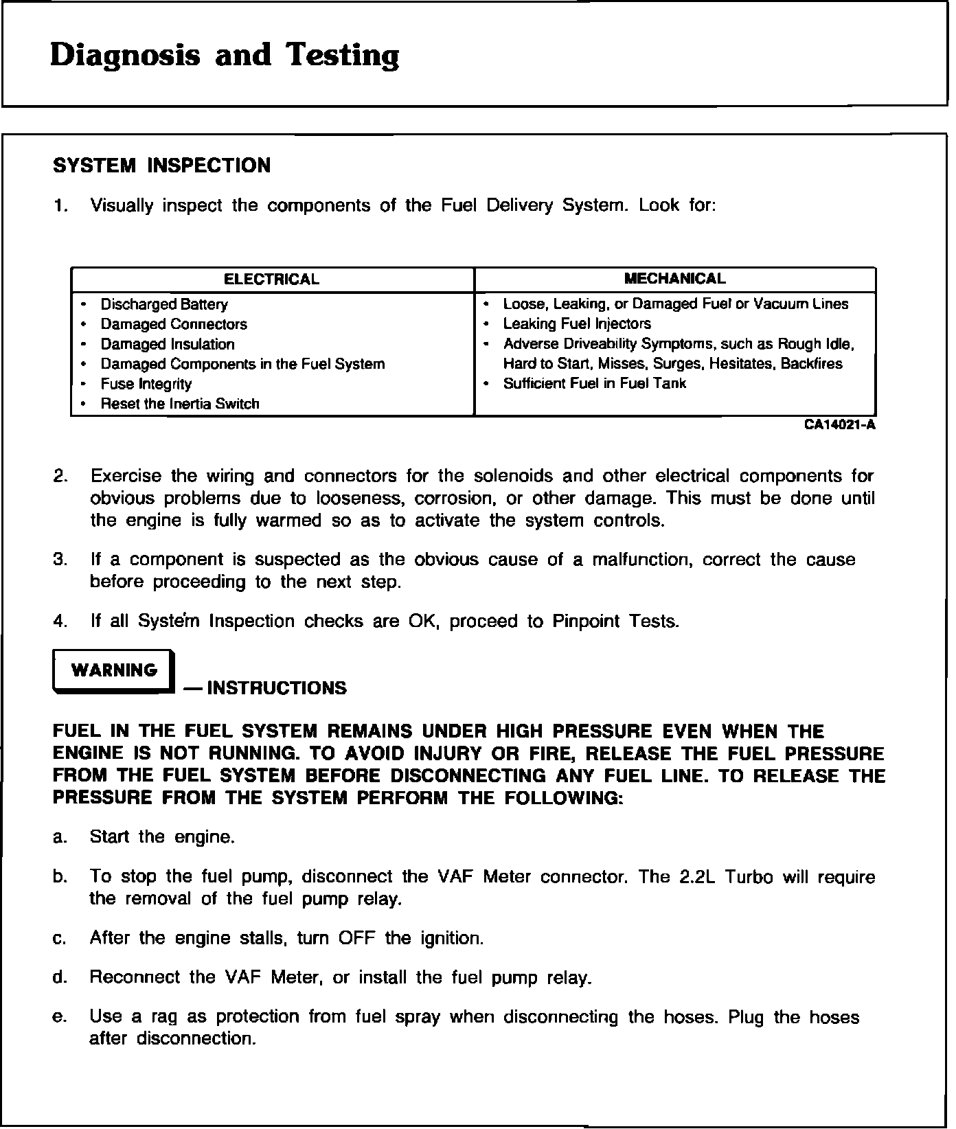 Fuel System Delivery/Diagnosis and Testing