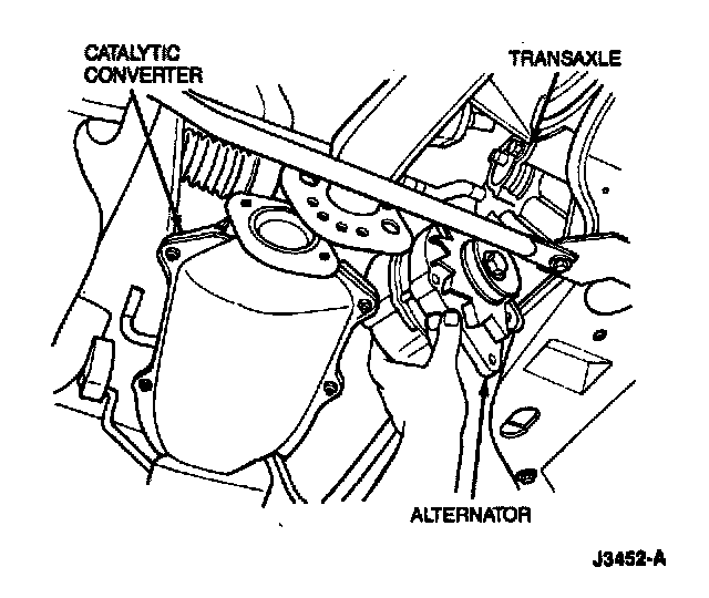 10. Carefully move alternator to the LH side of the vehicle and remove alternator between transaxle and catalytic converter.