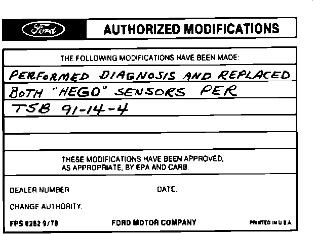 1. Check to see if the vehicle has a (F17F-9F472-AA) HEGO sensor (Part number is on sensor). If so, replace both sensors and install a new service processor.