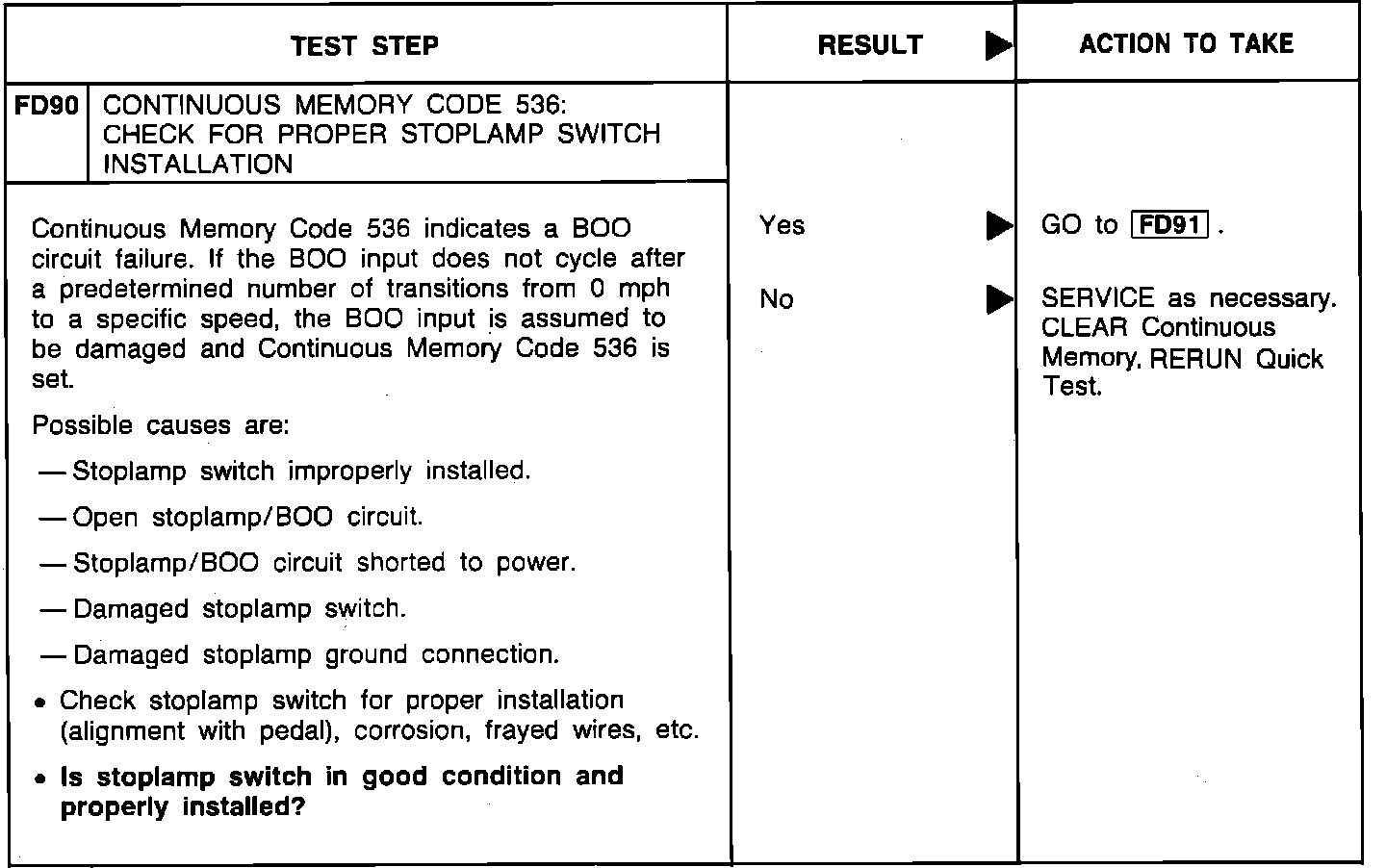FD90 - Check For Proper Stoplamp Switch Installation