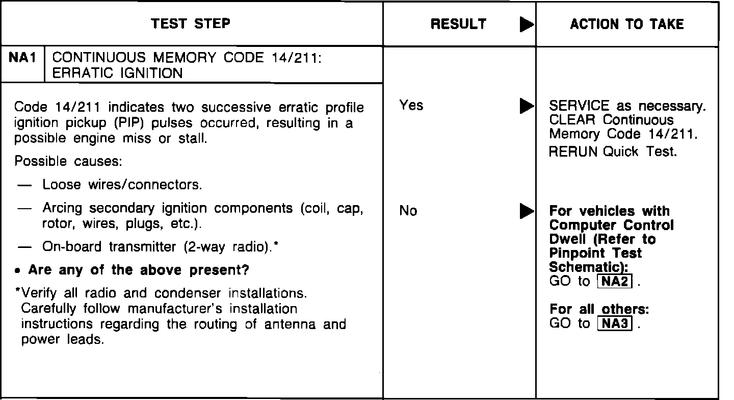 NA1 - Continuous Codes 14/211: Erratic Ignition