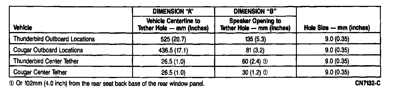 If tether anchorage hardware is required for the child safety seat but is not provided by the child safety seat manufacturer, tether anchor hardware kits can be obtained at no charge from any Ford or Lincoln-Mercury dealer. Attachment holes at each rear seating position have been provided in all vehicles.