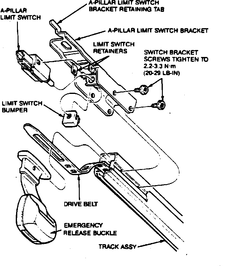 4. Tighten the A-Pillar limit switch attachment to 4.5-7.0 Nm (40-62 lb-in).