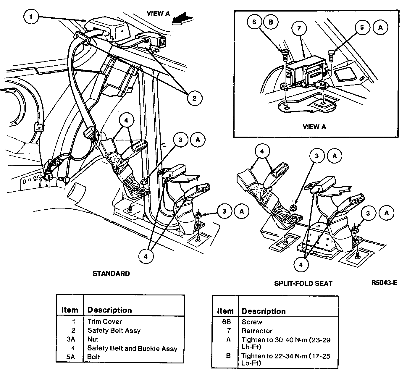 3. Remove buckle end anchor nuts and remove buckle end belts.