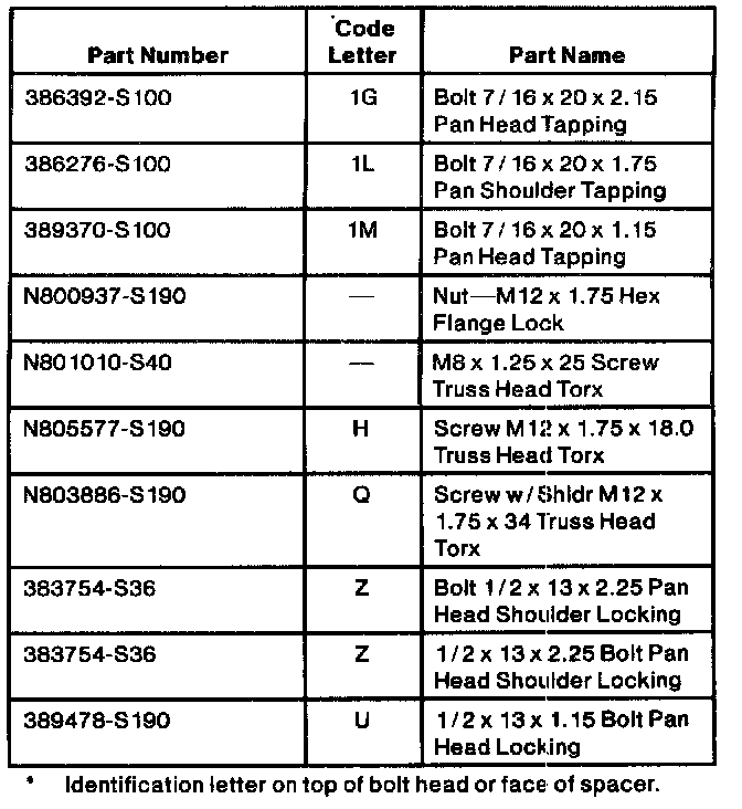 5. Install the attachment parts in the proper sequence using proper service procedures. Install new bolt and hand tighten using proper service procedures. Original parts are to be replaced with the service parts indicated in the Parts Replacement Chart.