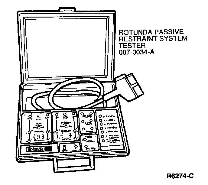 Rotunda Passive Restraint System Tester 007-00034 or equivalent may be used to perform Pinpoint Tests A through H.