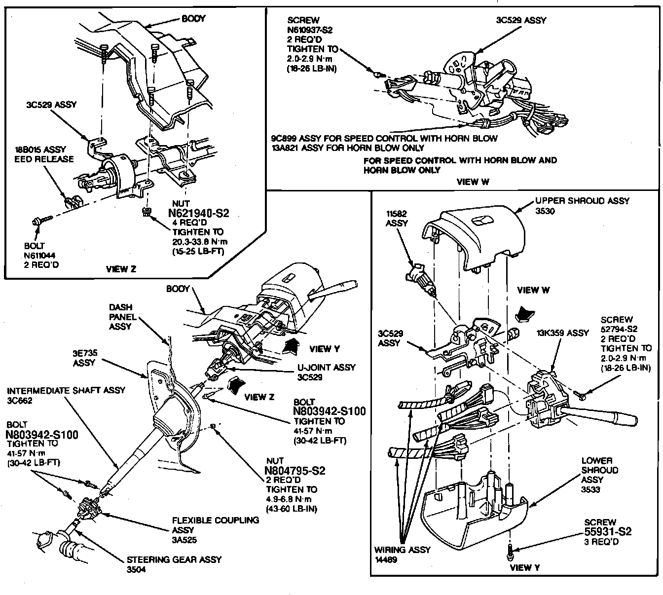 Fig. 5 Steering Column Exploded View:
