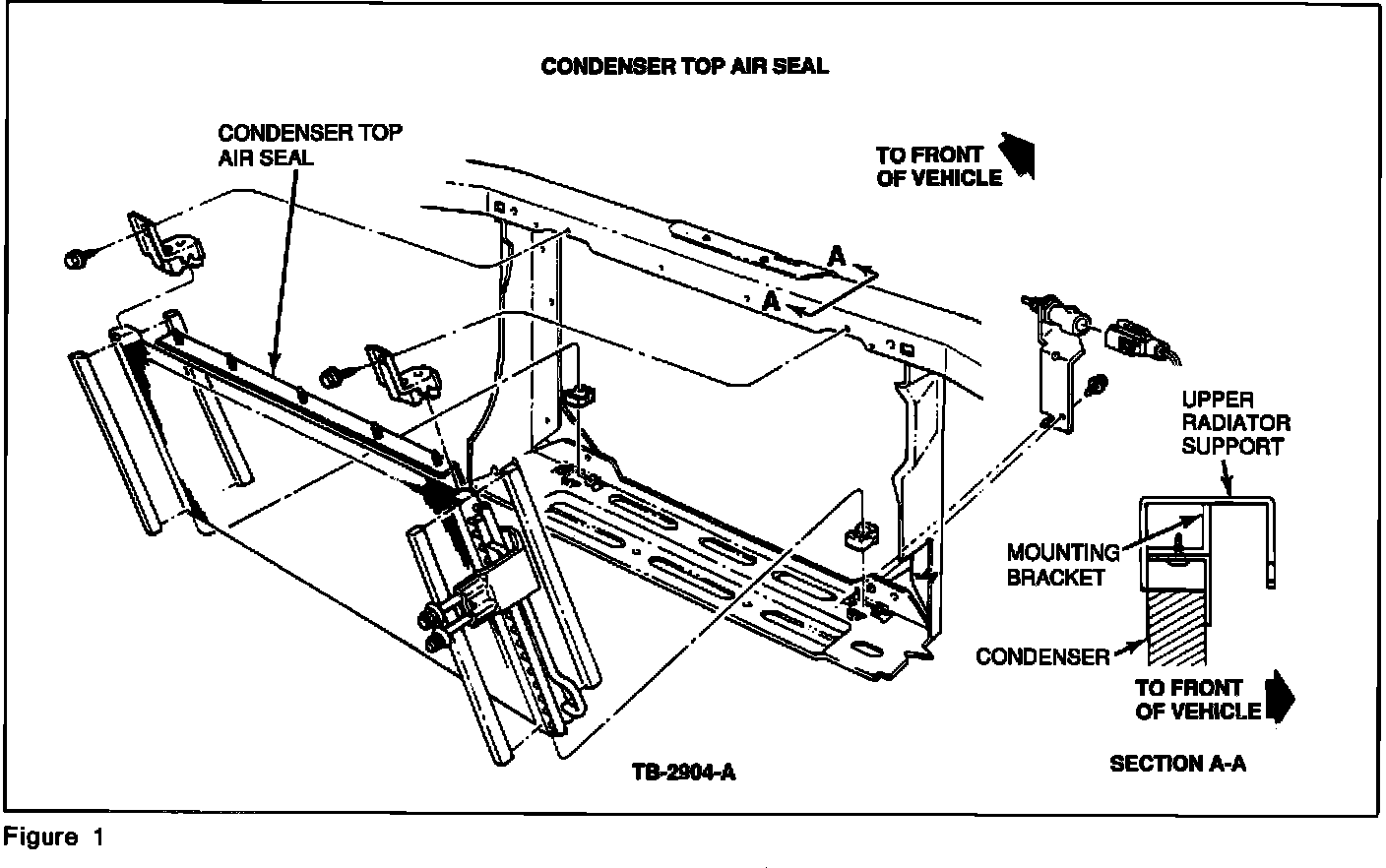 1. Check for the presence of a condenser top air seal by feeling under the upper radiator support, in the area shown in Figure 1.
