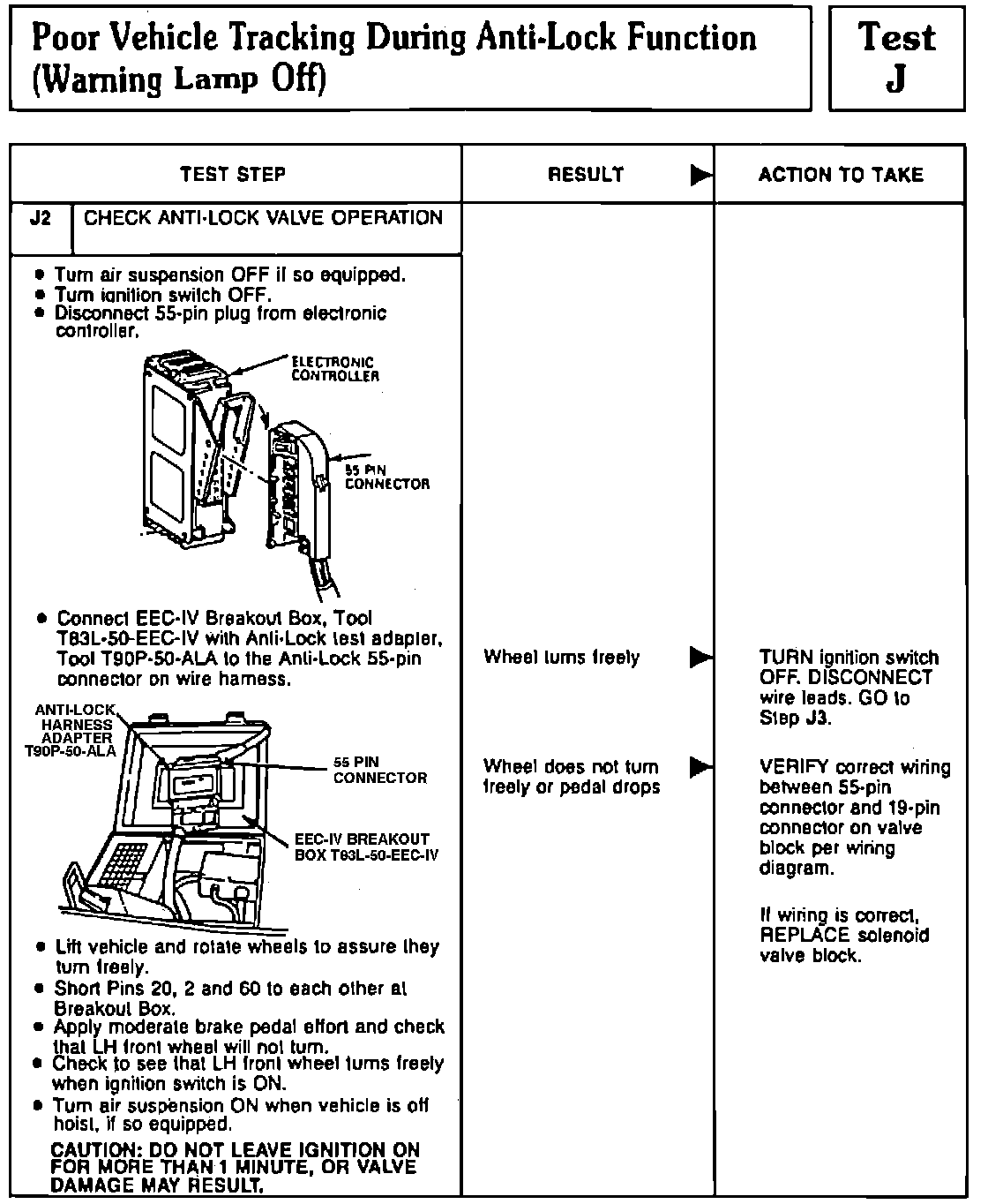 Fig. 140 Test J2 (Poor Vehicle Tracking During ABS Function). Except 1991 Town Car: