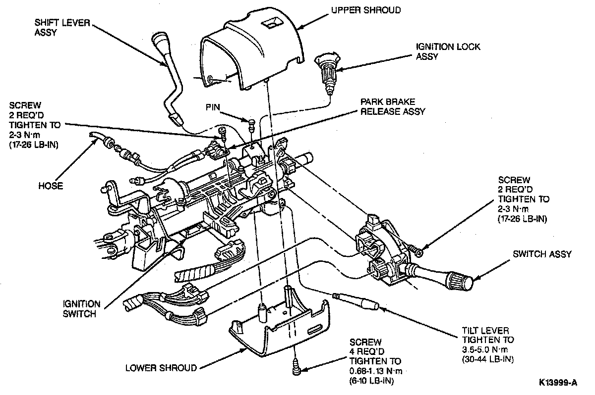 4. Install upper and lower steering column trim shroud with three screws.