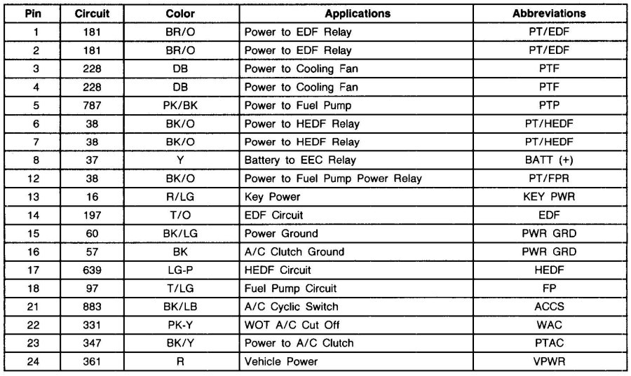 The Integral Relay Control Module (IRCM) interfaces with the EEC-IV processor to provide control of the cooling fan, A/C clutch, and the fuel pump.