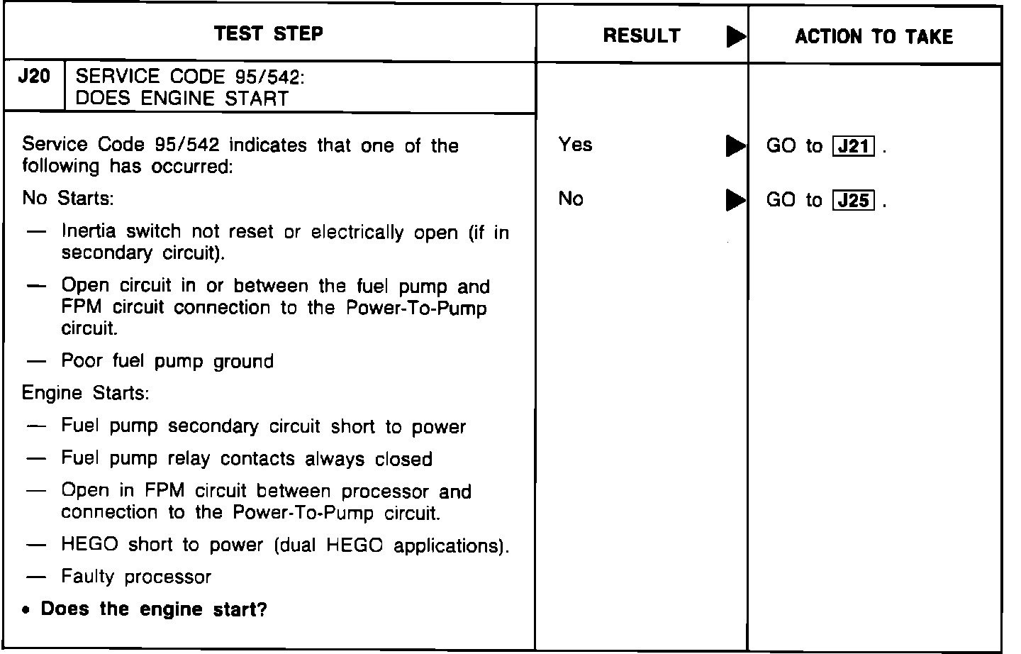 J20 - Service Code 95/542: Does Engine Start